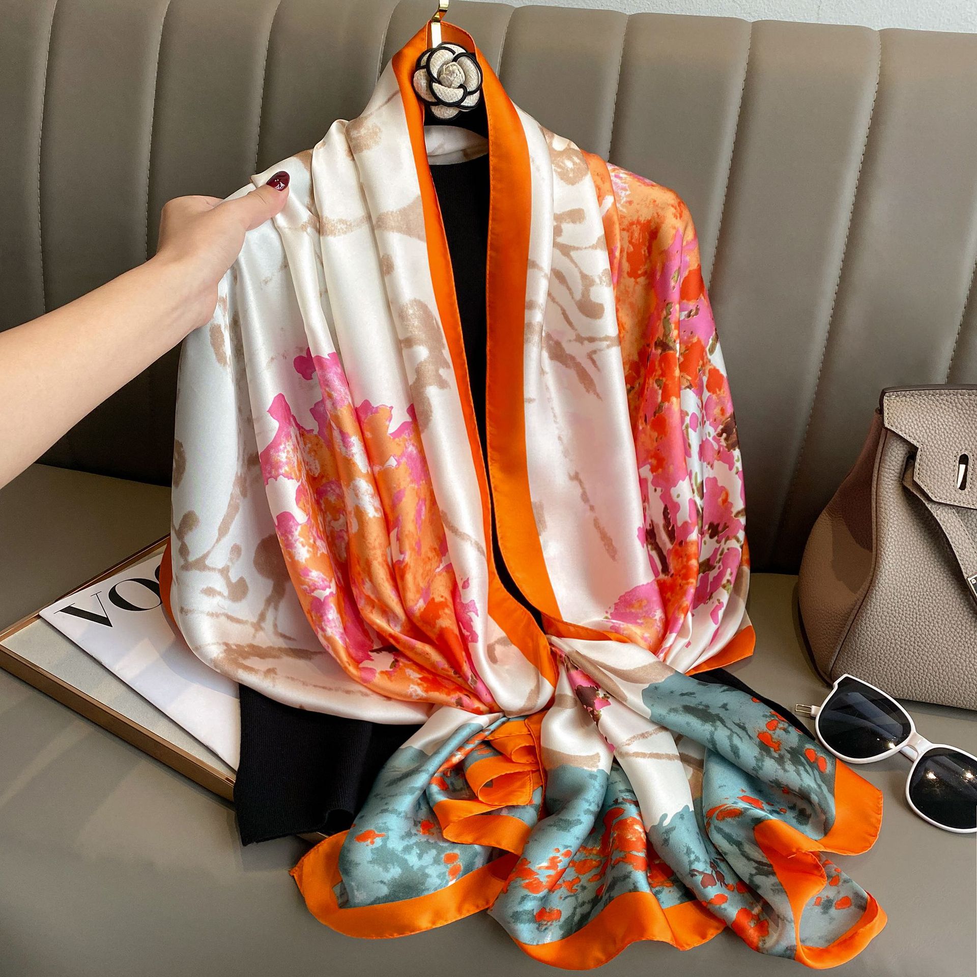 Mô tả Quà tặng 20/10 cho sếp nữ, vợ, cô giáo, giáo viên nữ, mẹ và bạn gái, người yêu nữ quà tặng khăn quàng choàng cổ lụa cao cấp cho nữ văn phòng sở đẹp màu cam đỏ LAGU Khăn Phụ Kiện
