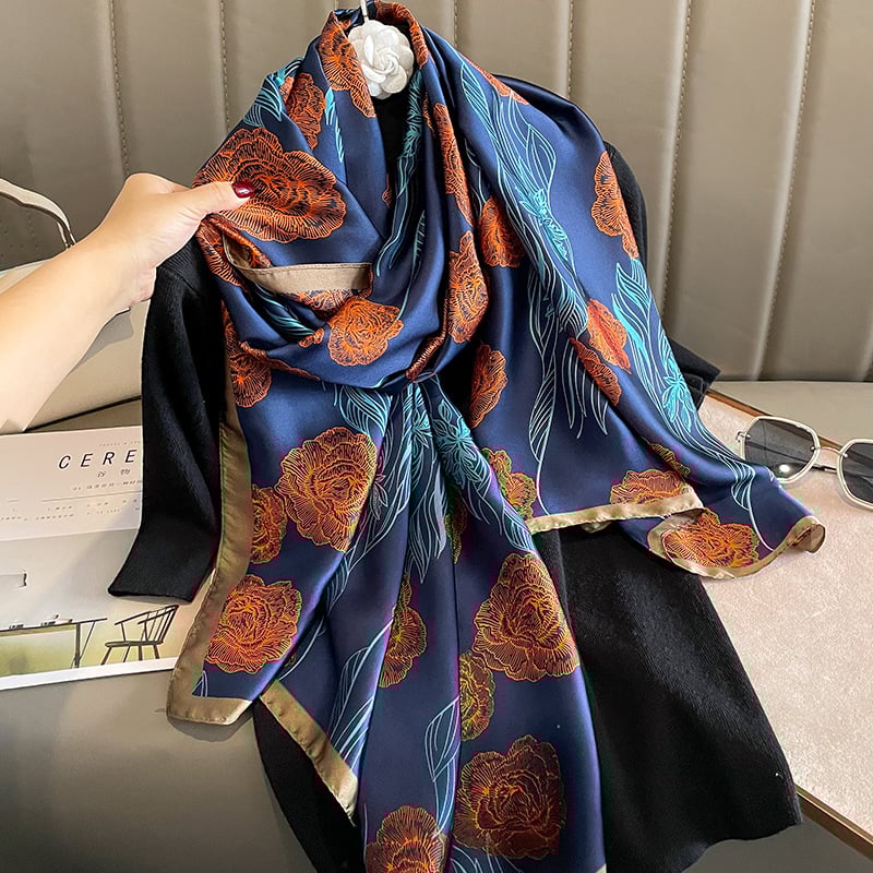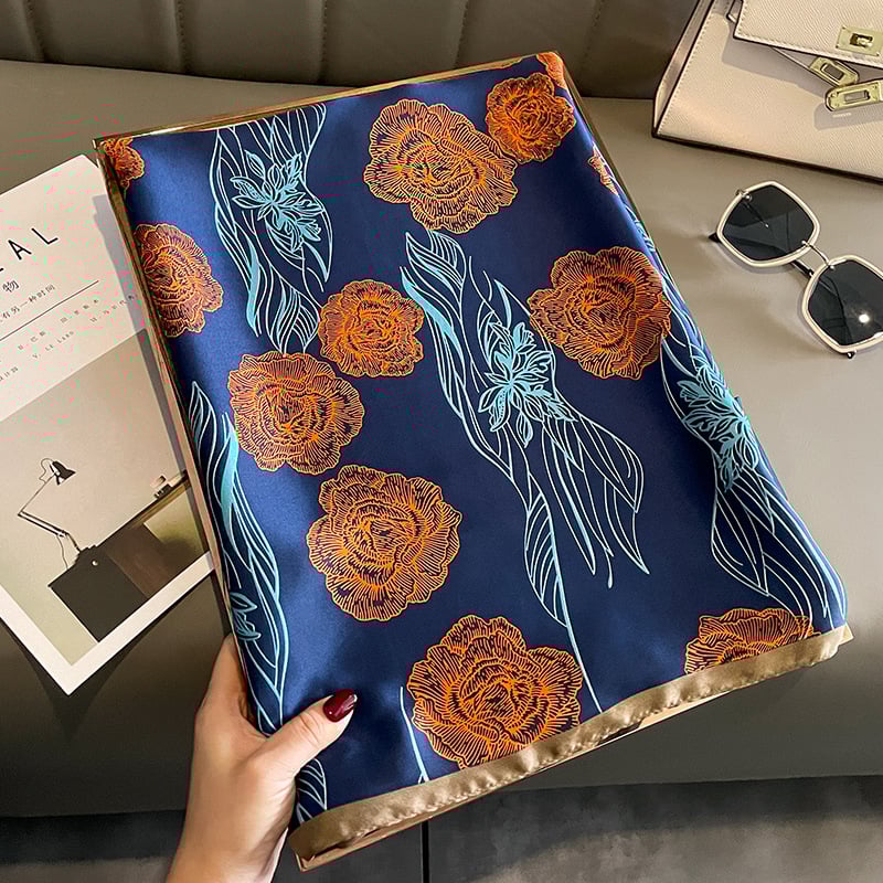 Quà tặng 20/10 cho sếp nữ, vợ, cô giáo, giáo viên nữ, mẹ và bạn gái, người yêu nữ quà tặng khăn quàng choàng cổ lụa cao cấp cho nữ văn phòng sở đẹp màu xanh dương hoa cam LAGU Khăn Phụ Kiện - KS199