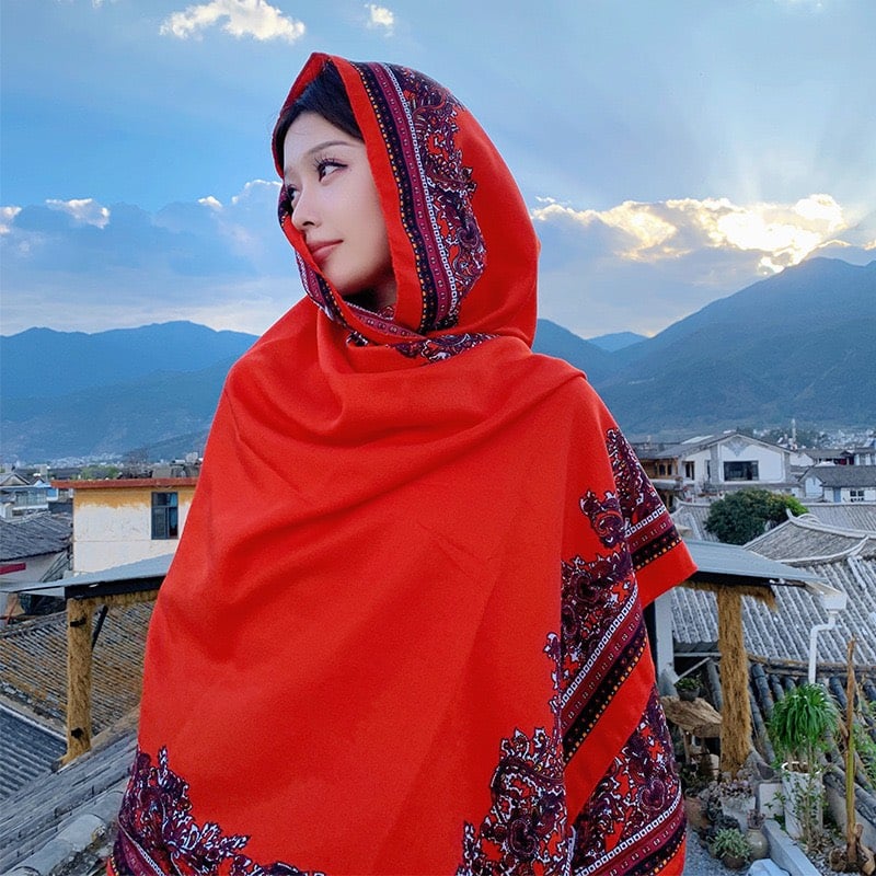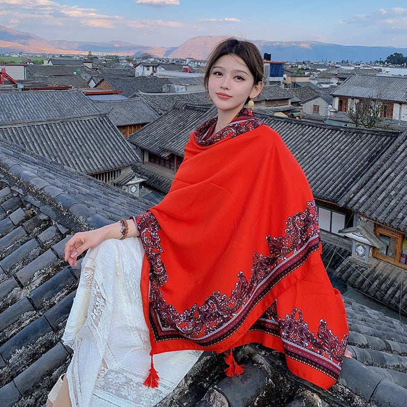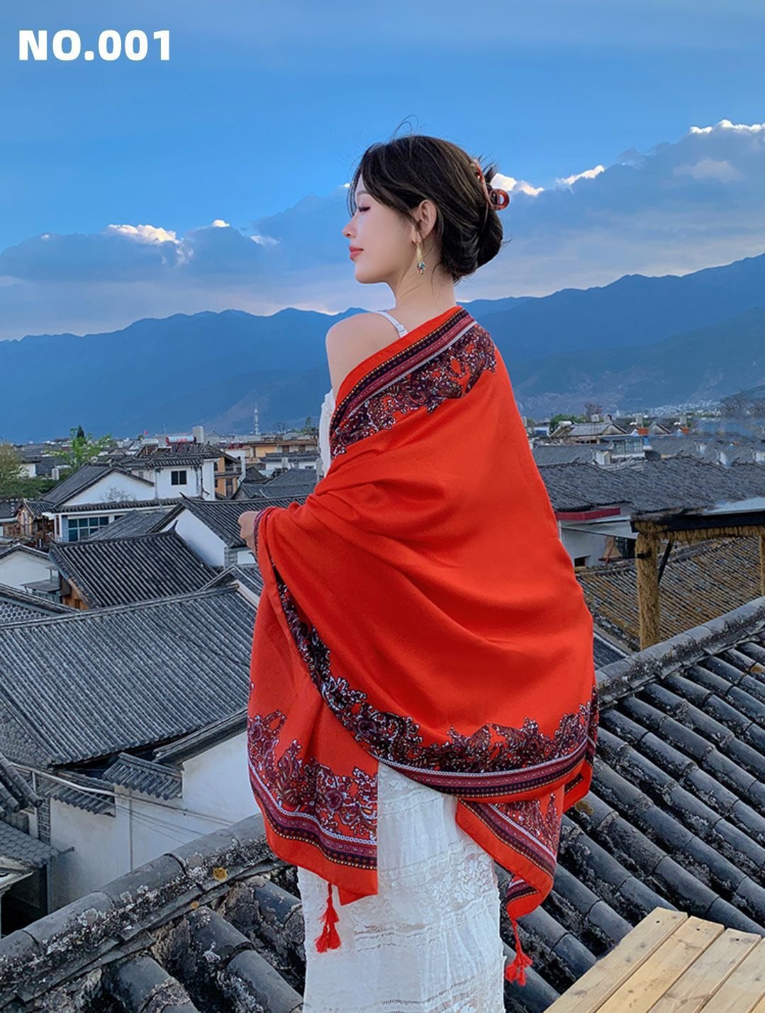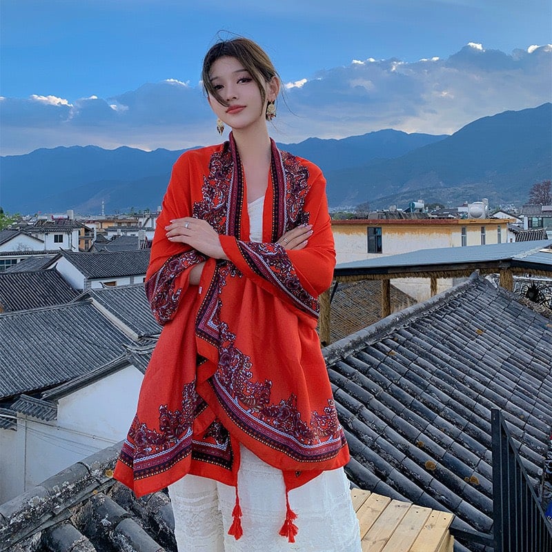 Quà tặng 20/10 cho sếp nữ, vợ, cô giáo, giáo viên nữ, mẹ và bạn gái, người yêu nữ quà tặng khăn quàng choàng cổ nữ đi biển boho thổ cẩm đẹp cao cấp màu đỏ họa tiết - Mã KC433