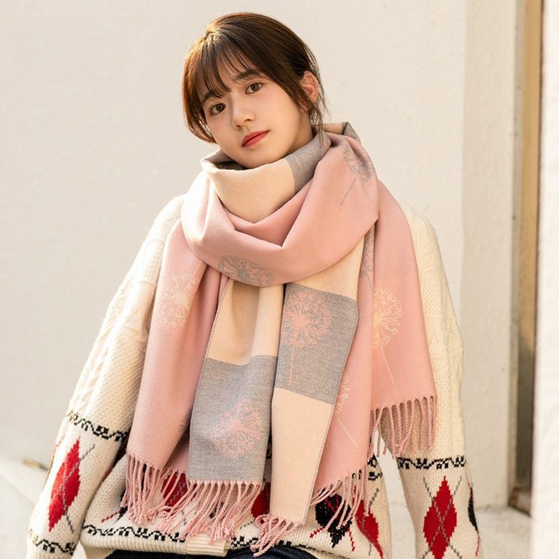 Quà tặng 20/10 cho sếp nữ, vợ, cô giáo, giáo viên nữ, mẹ và bạn gái, người yêu nữ quà tặng khăn quàng cổ len cashmere nữ choàng giữ ấm màu hồng pastel LAGU Khăn Phụ Kiện - KC340