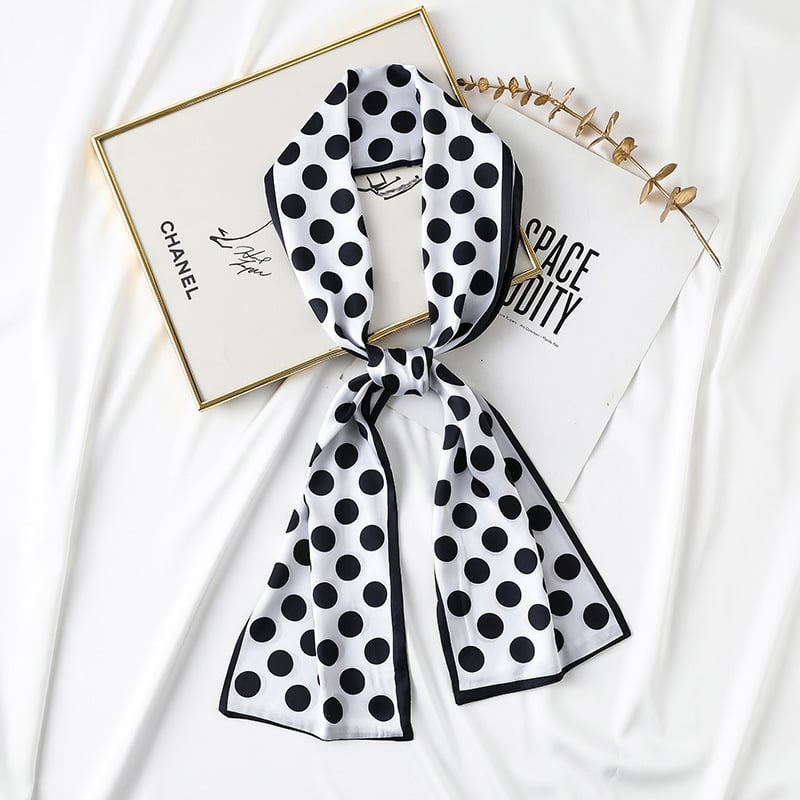 Quà tặng 20/10 cho sếp nữ, vợ, cô giáo, giáo viên nữ, mẹ và bạn gái, người yêu nữ quà tặng khăn quàng choàng cổ lụa cao cấp cho nữ văn phòng sở đẹp họa tiết chấm bi màu trắng LAGU Khăn Phụ Kiện - K1002
