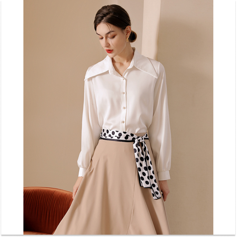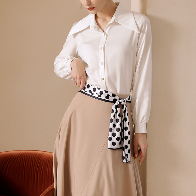 Mô tả Quà tặng 20/10 cho sếp nữ, vợ, cô giáo, giáo viên nữ, mẹ và bạn gái, người yêu nữ quà tặng khăn quàng choàng cổ lụa cao cấp cho nữ văn phòng sở đẹp họa tiết chấm bi màu trắng LAGU Khăn Phụ Kiện - K1002