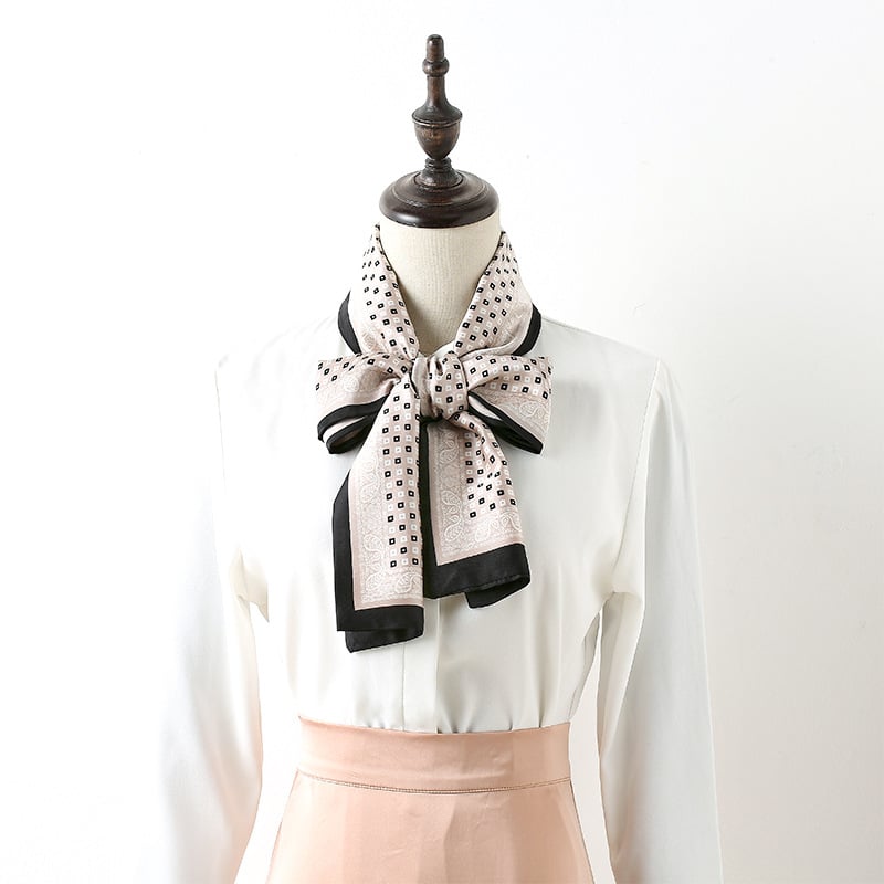 Mô tả Quà tặng 20/10 cho sếp nữ, vợ, cô giáo, giáo viên nữ, mẹ và bạn gái, người yêu nữ quà tặng khăn quàng choàng cổ lụa cao cấp cho nữ văn phòng sở đẹp họa tiết ruy băng màu be LAGU Khăn Phụ Kiện - K1008