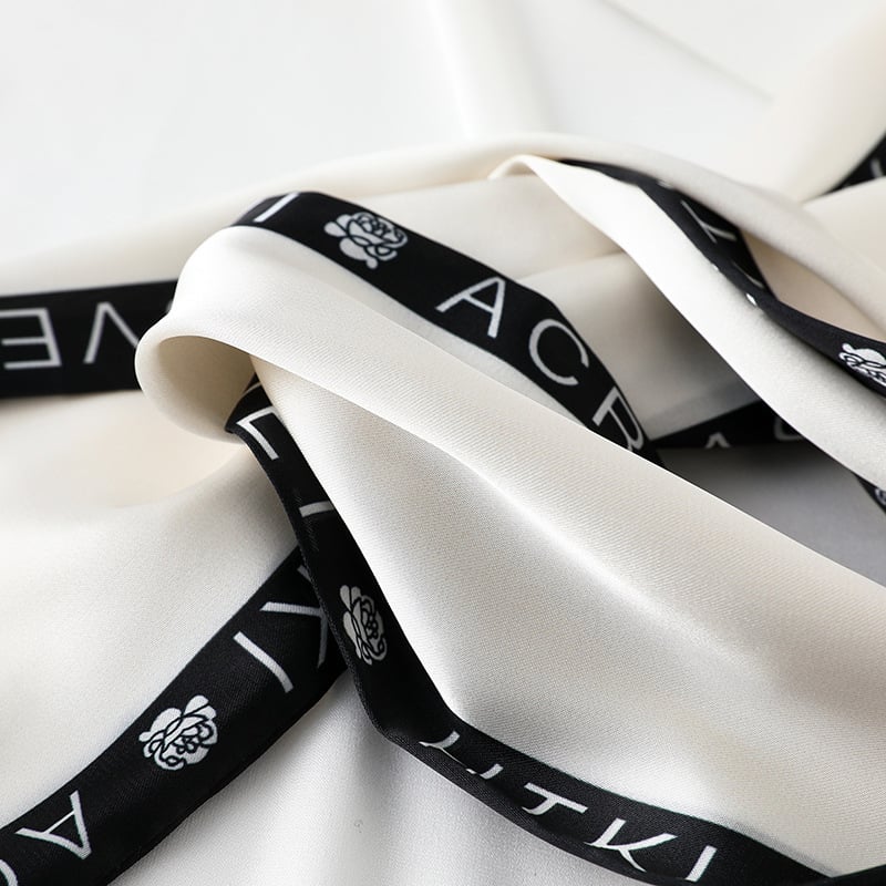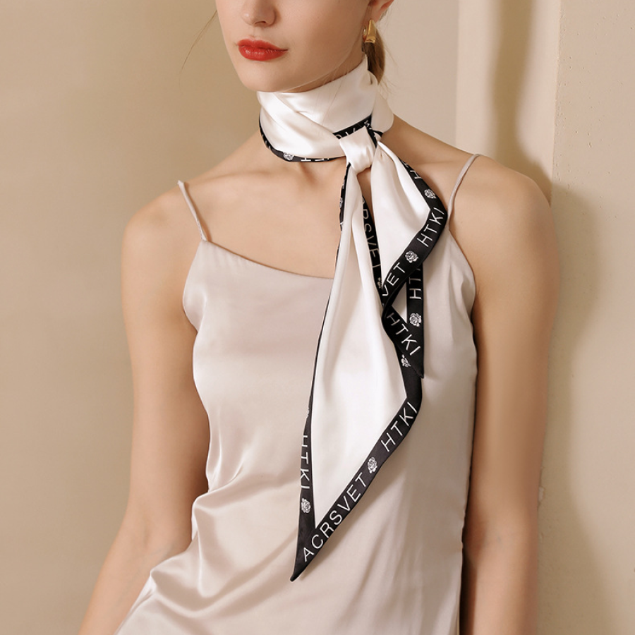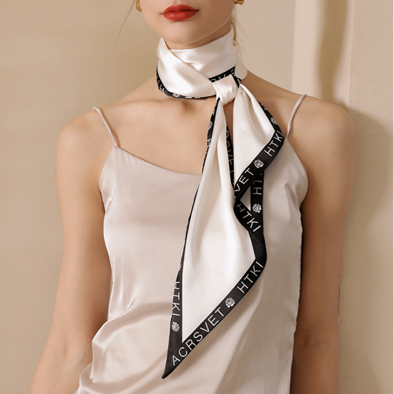 Quà tặng 20/10 cho sếp nữ, vợ, cô giáo, giáo viên nữ, mẹ và bạn gái, người yêu nữ quà tặng khăn quàng choàng cổ lụa cao cấp cho nữ văn phòng sở đẹp màu trắng trơn viền đen LAGU Khăn Phụ Kiện - K2008