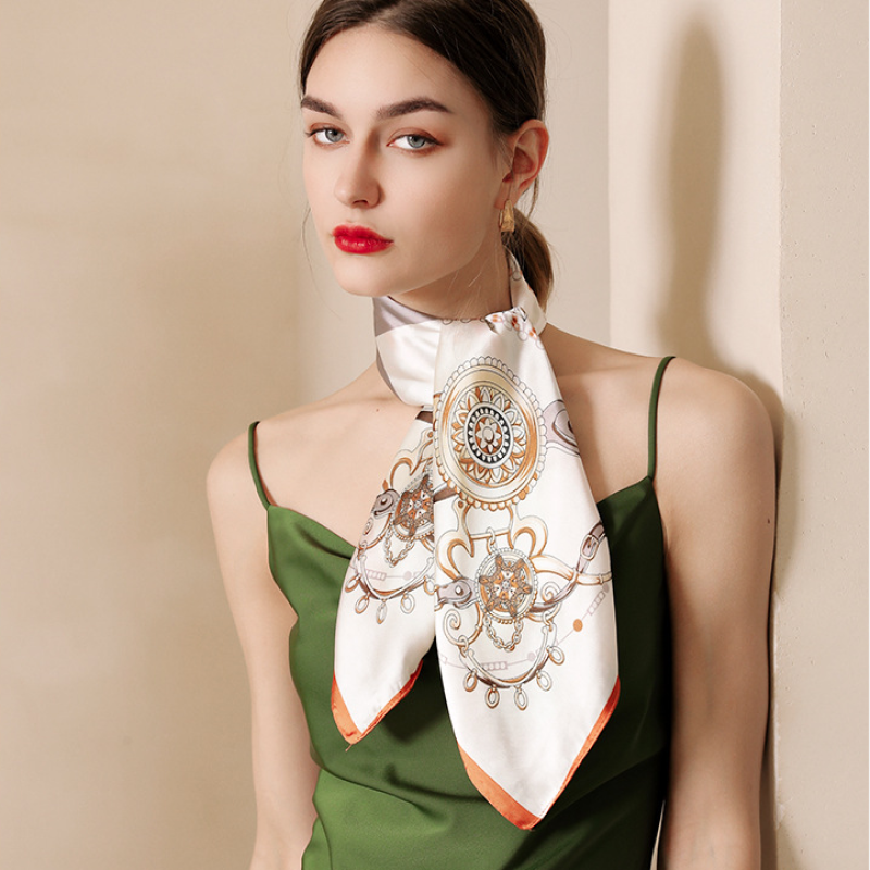 Quà tặng 20/10 cho sếp nữ, vợ, cô giáo, giáo viên nữ, mẹ và bạn gái, người yêu nữ quà tặng khăn quàng cổ size 58cm lụa mỏng nhẹ thích hợp cho mùa hè mùa xuân mùa thu chống nắng họa tiết kim cương màu cam LAGU Khăn Phụ Kiện- K5002