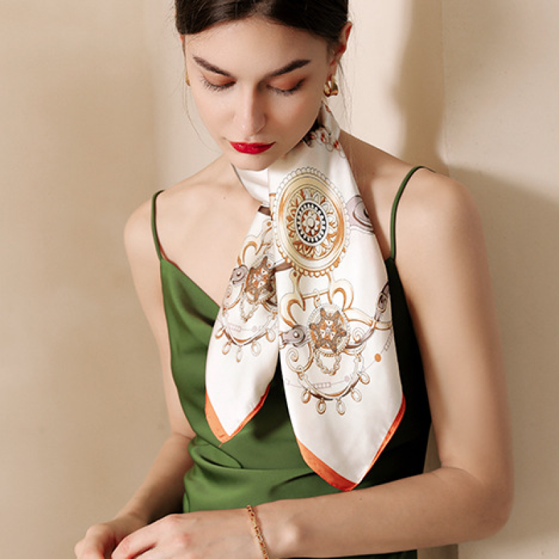 Quà tặng 20/10 cho sếp nữ, vợ, cô giáo, giáo viên nữ, mẹ và bạn gái, người yêu nữ quà tặng khăn quàng cổ size 58cm lụa mỏng nhẹ thích hợp cho mùa hè mùa xuân mùa thu chống nắng họa tiết tế kim cương màu cam LAGU Khăn Phụ Kiện- K5002