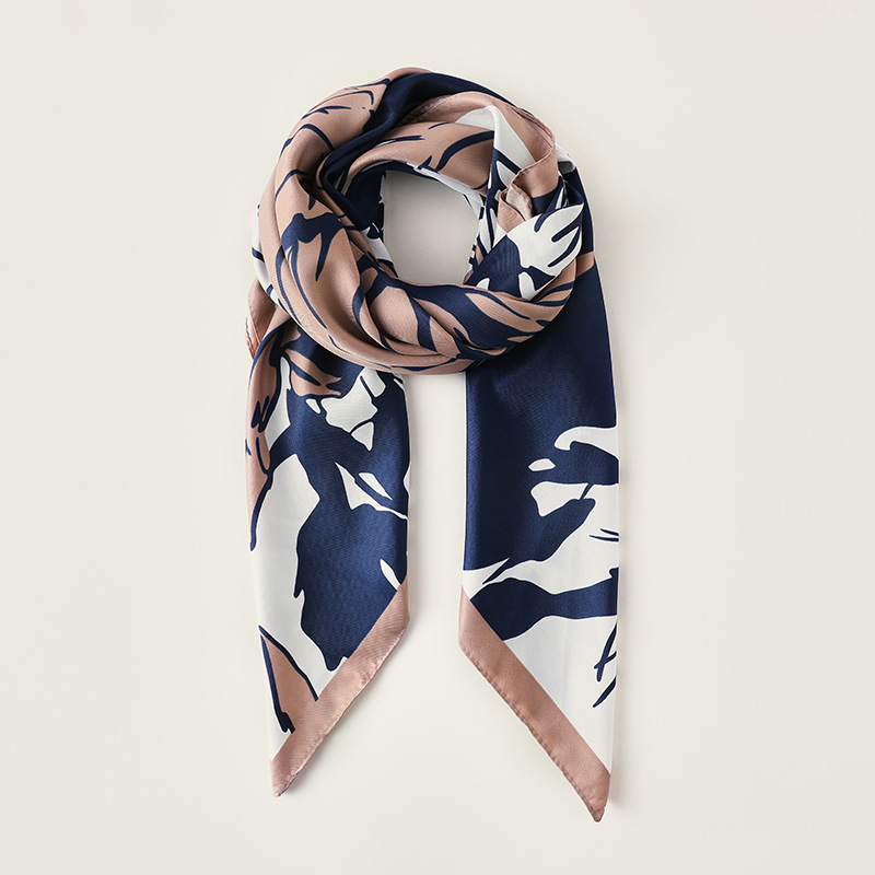 Quà tặng 20/10 cho sếp nữ, vợ, cô giáo, giáo viên nữ, mẹ và bạn gái, người yêu nữ quà tặng khăn quàng choàng cổ lụa vuông cao cấp cho nữ văn phòng sở đẹp họa tiết hoa hồng màu xanh đen viền nâu LAGU Khăn Phụ Kiện - K9042