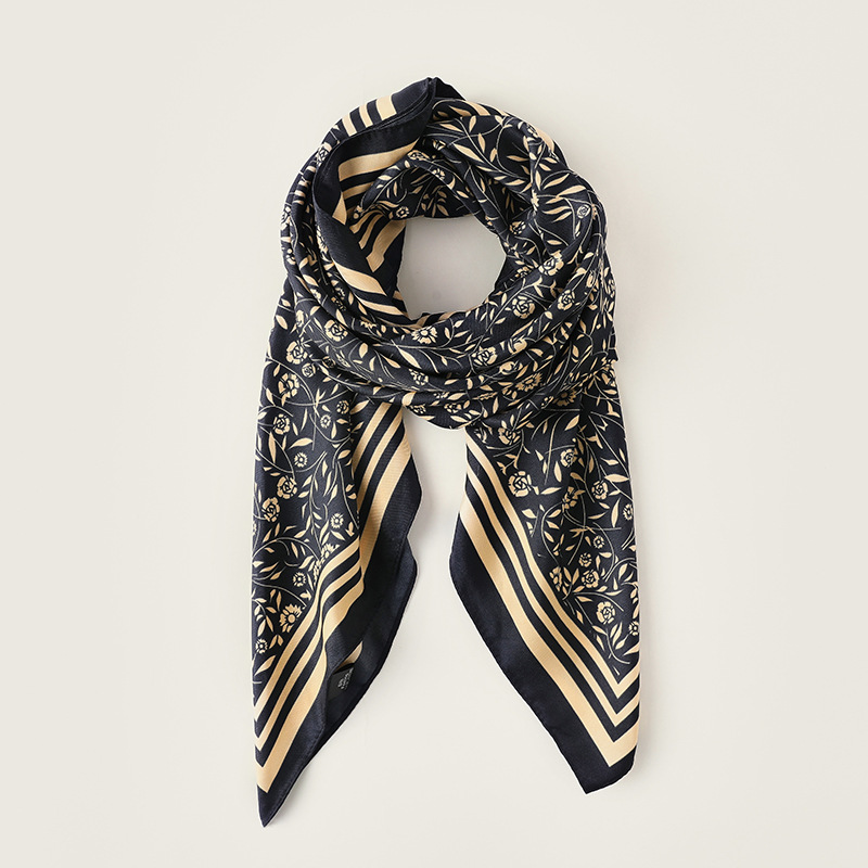 Quà tặng 20/10 cho sếp nữ, vợ, cô giáo, giáo viên nữ, mẹ và bạn gái, người yêu nữ quà tặng khăn quàng choàng cổ lụa vuông cao cấp cho nữ văn phòng sở đẹp họa tiết hoa nhí màu xanh đen LAGU Khăn Phụ Kiện- K9040