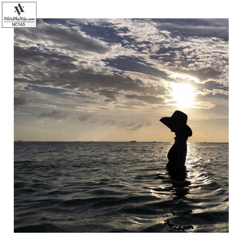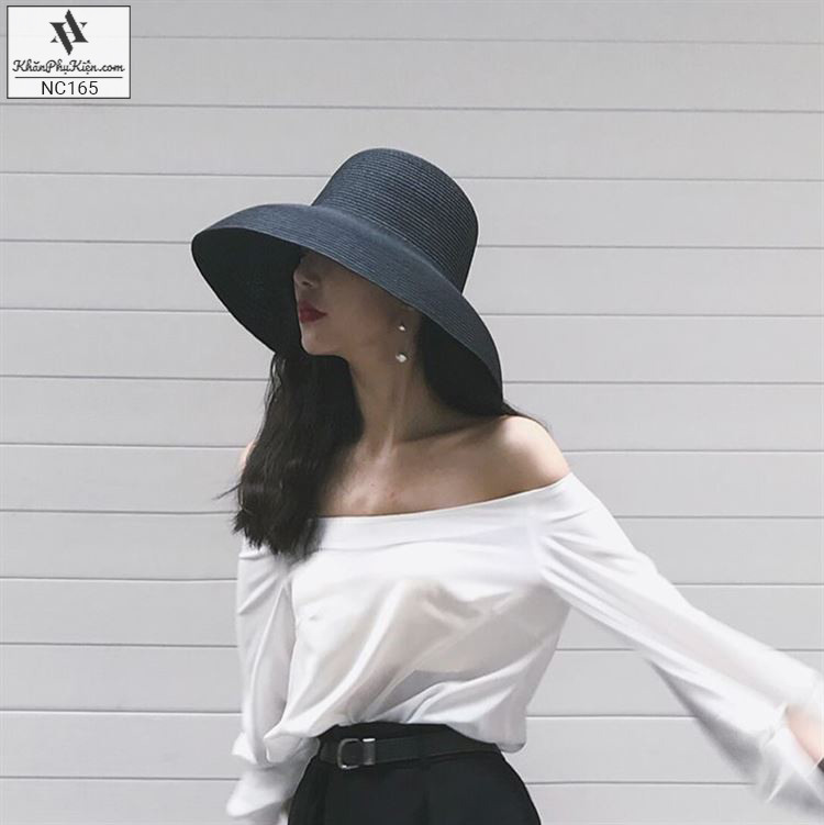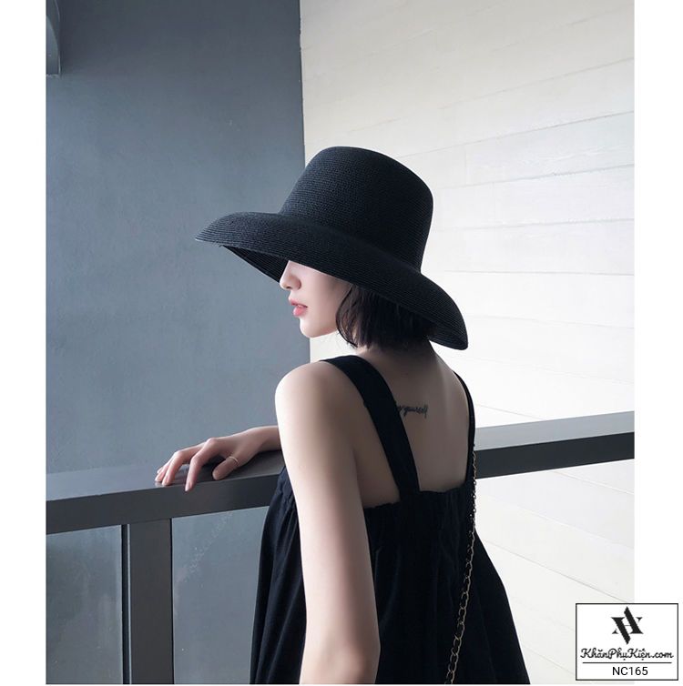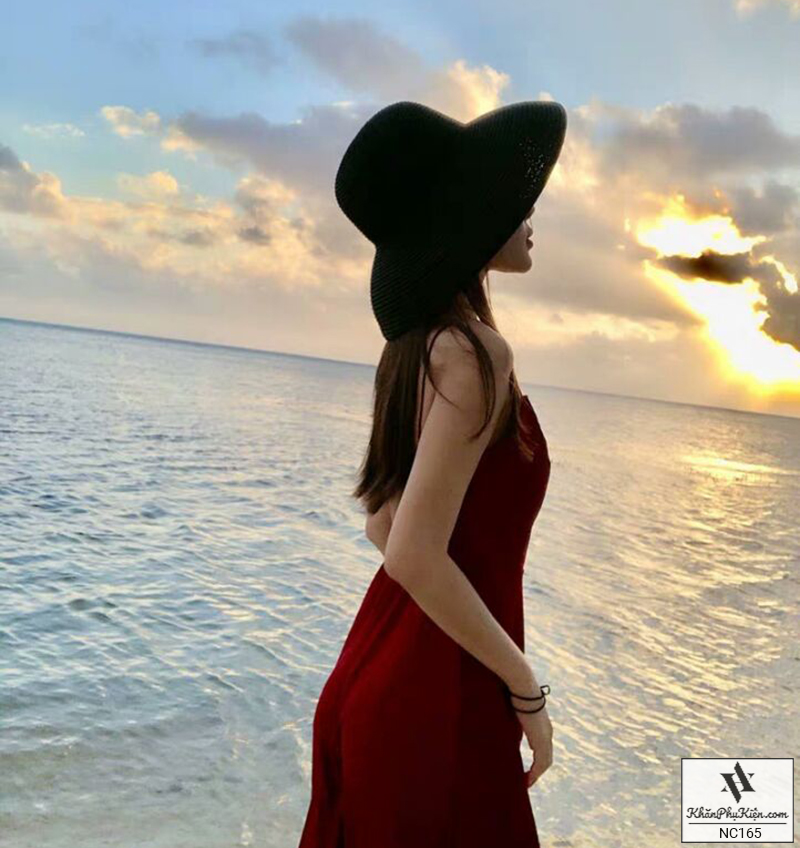 Quà tặng 20/10 cho sếp nữ, vợ, cô giáo, giáo viên nữ, mẹ và bạn gái, người yêu nữ quà tặng mũ nón cói đi biển rộng vành tròn đẹp cho nữ chụp lồng đèn màu đen - Mã NC165