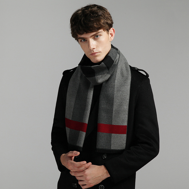 Mô tả Quà tặng 20/11 cho thầy giáo, thầy giáo chủ nhiệm, giáo viên nam, thầy cô giáo ý nghĩa thiết thực tri ân ngày nhà giáo Việt Nam quà tặng Khăn quàng choàng cổ nam Hàng Hiệu & Cao Cấp - Khăn len cashmere giữ ấm họa tiết màu Xám sọc đỏ - KN019
