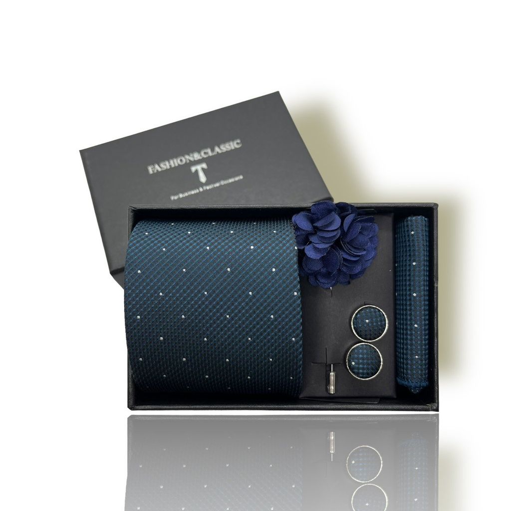 Nếu bạn đang tìm kiếm 1 mẫu cà vạt có thêm nhiều phụ kiện khác nhau để “tông xoẹt tông” giữa các chi tiết thì set 4 món là lựa chọn tối ưu dành cho bạn. Với sự kết hợp tinh tế giữa cà vạt và nhiều phụ kiện khác nhau, set này không chỉ là một sản phẩm thời trang mà còn là biểu tượng của sự lịch lãm và tinh tế.