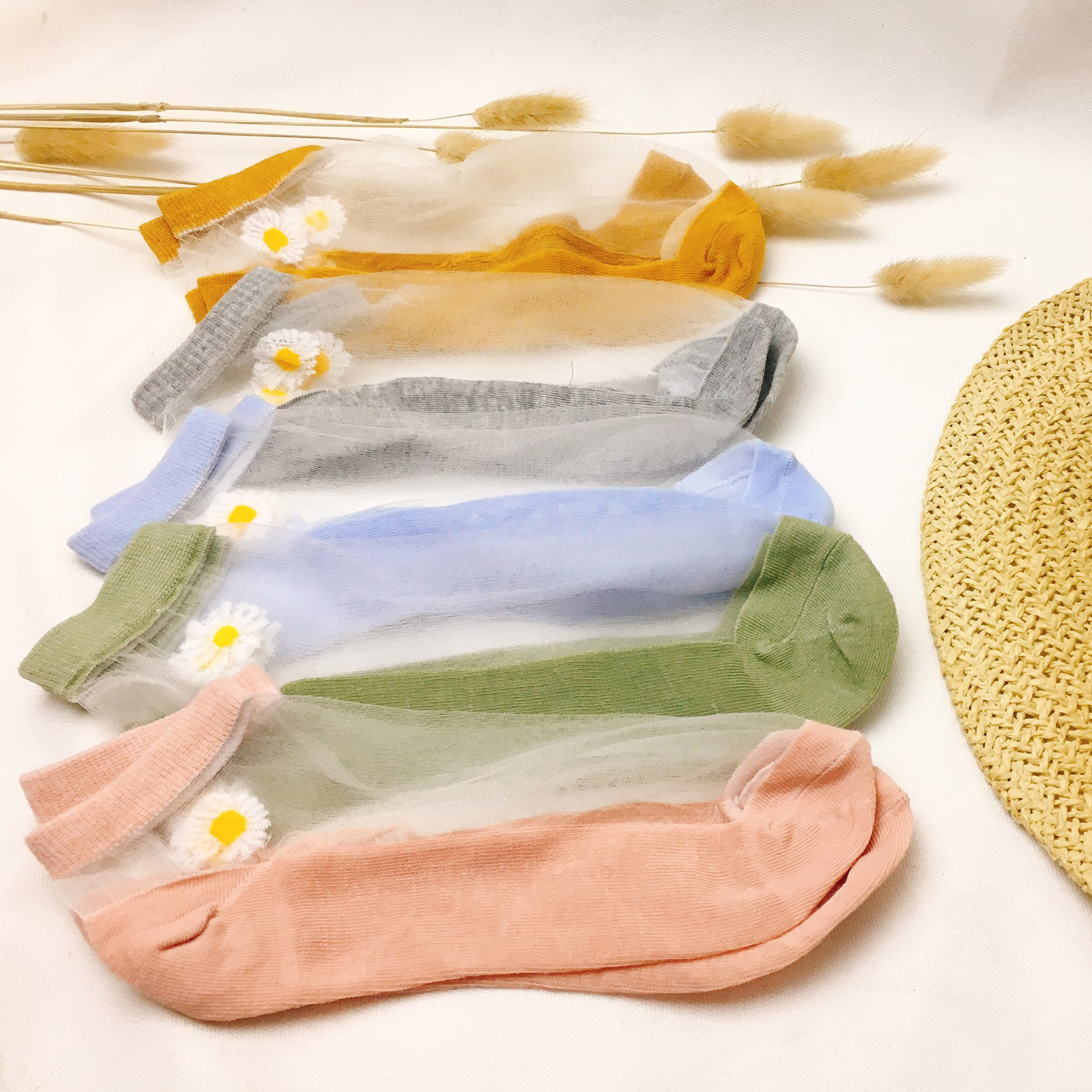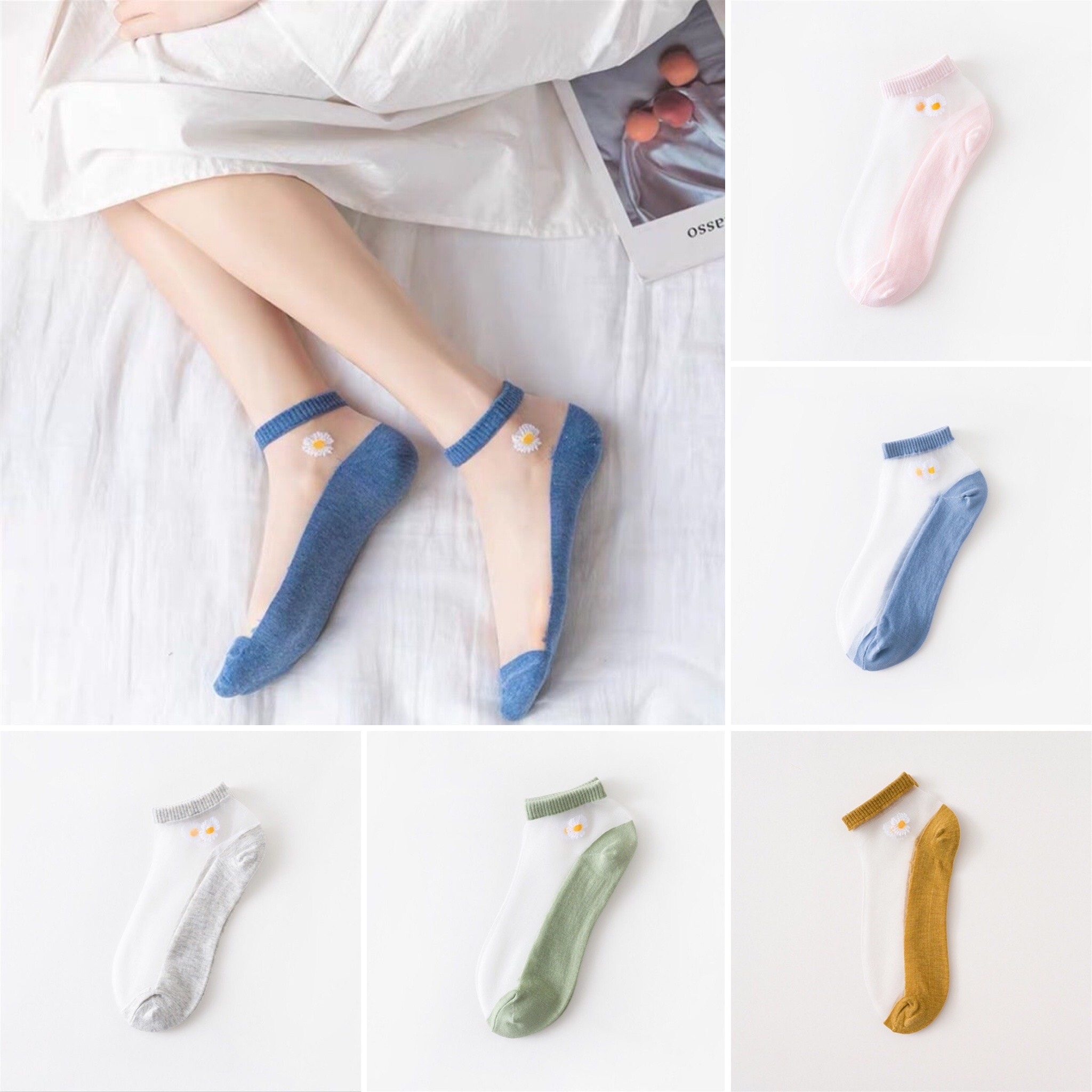 Mô tả Set 5 Tất Nữ - Vớ Dài Màu Xanh, Vàng, Trắng, Xám Pastel