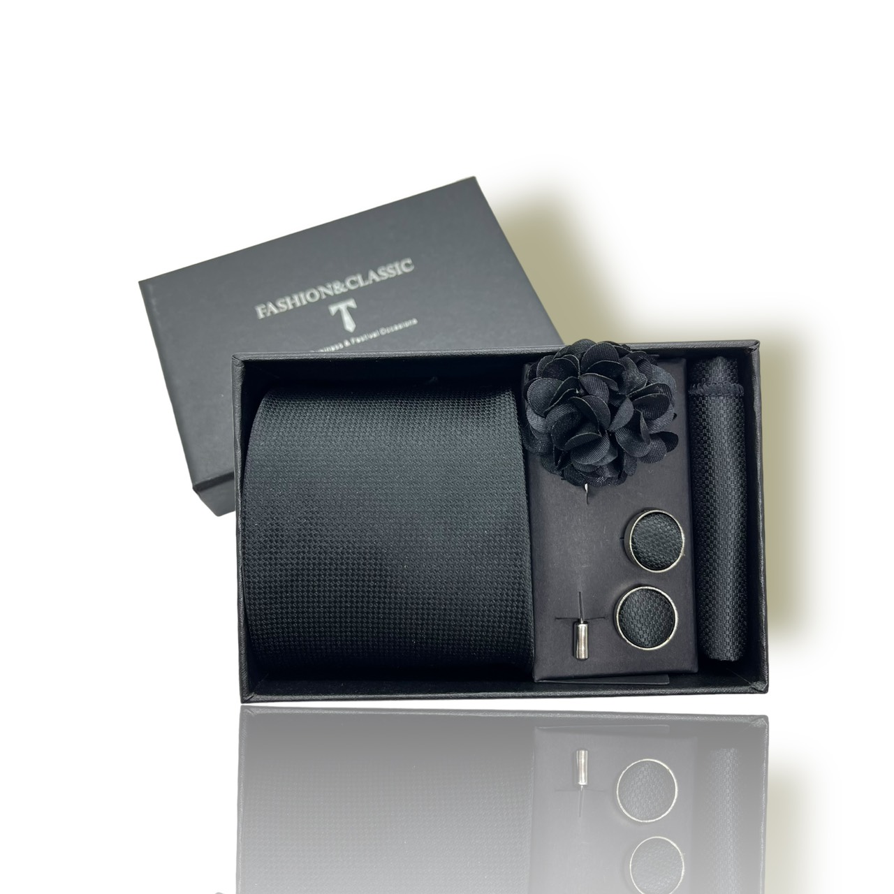 Với nhiều mẫu mã và màu sắc khác nhau, set cà vạt 4 món phù hợp với nhiều phong cách và sự kiện khác nhau. Cho dù bạn đang chuẩn bị cho một buổi tiệc trang trí, một cuộc họp quan trọng, hay chỉ là một ngày thường, set này đều là sự lựa chọn linh hoạt và đa dạng. Bộ sản phẩm gồm: