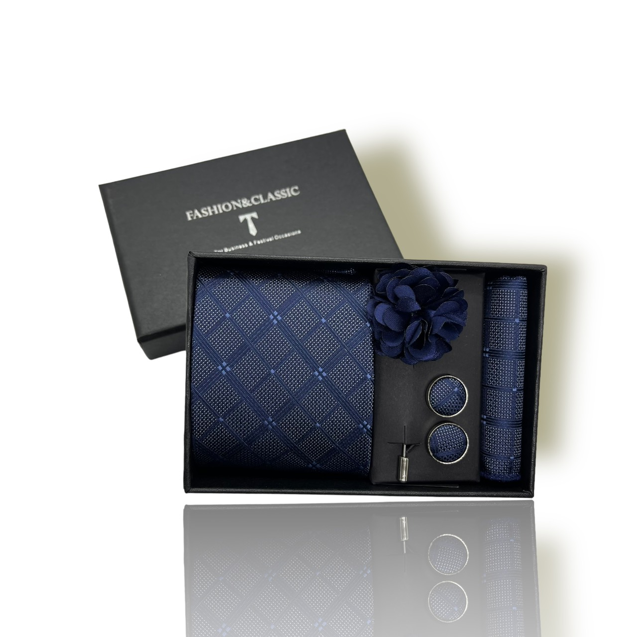 Với nhiều mẫu mã và màu sắc khác nhau, set cà vạt 4 món phù hợp với nhiều phong cách và sự kiện khác nhau. Cho dù bạn đang chuẩn bị cho một buổi tiệc trang trí, một cuộc họp quan trọng, hay chỉ là một ngày thường, set này đều là sự lựa chọn linh hoạt và đa dạng. Bộ sản phẩm gồm: