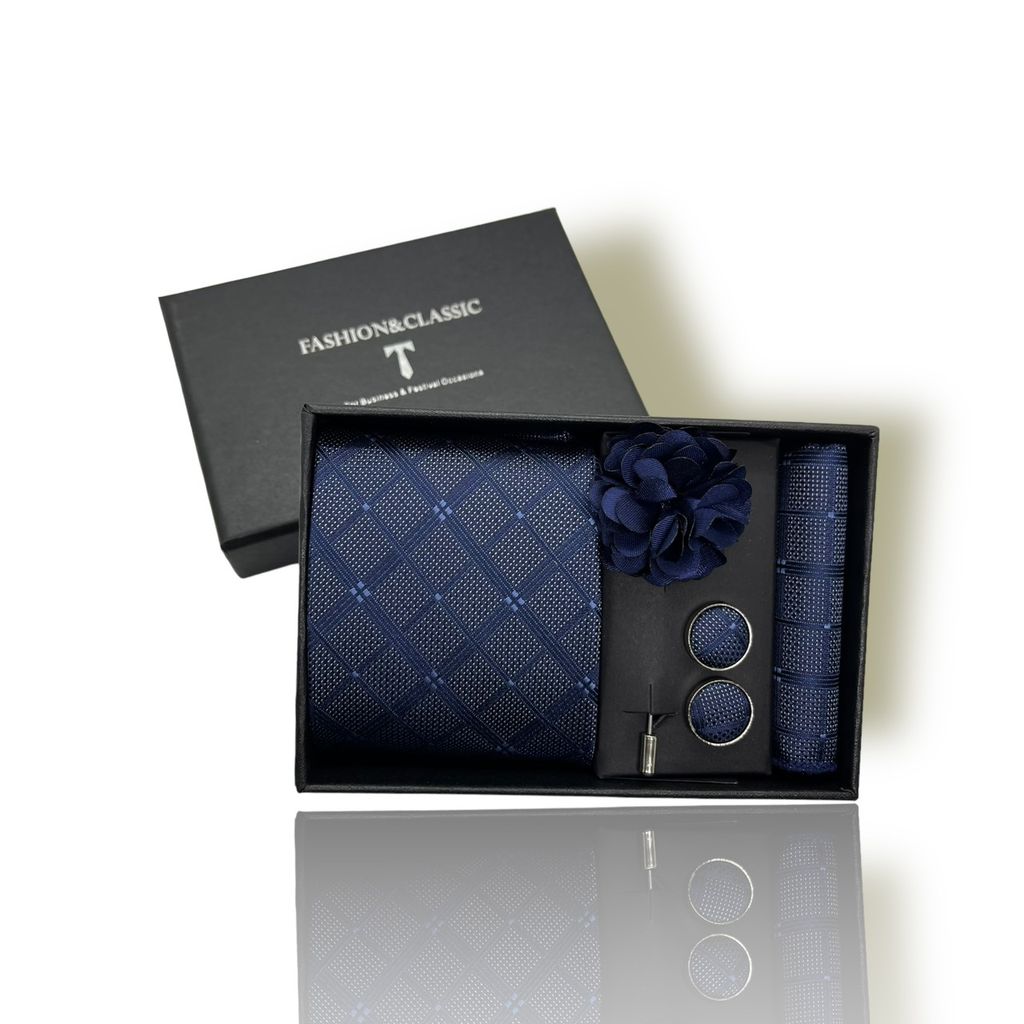 Nếu bạn đang tìm kiếm 1 mẫu cà vạt có thêm nhiều phụ kiện khác nhau để “tông xoẹt tông” giữa các chi tiết thì set 4 món là lựa chọn tối ưu dành cho bạn. Với sự kết hợp tinh tế giữa cà vạt và nhiều phụ kiện khác nhau, set này không chỉ là một sản phẩm thời trang mà còn là biểu tượng của sự lịch lãm và tinh tế.