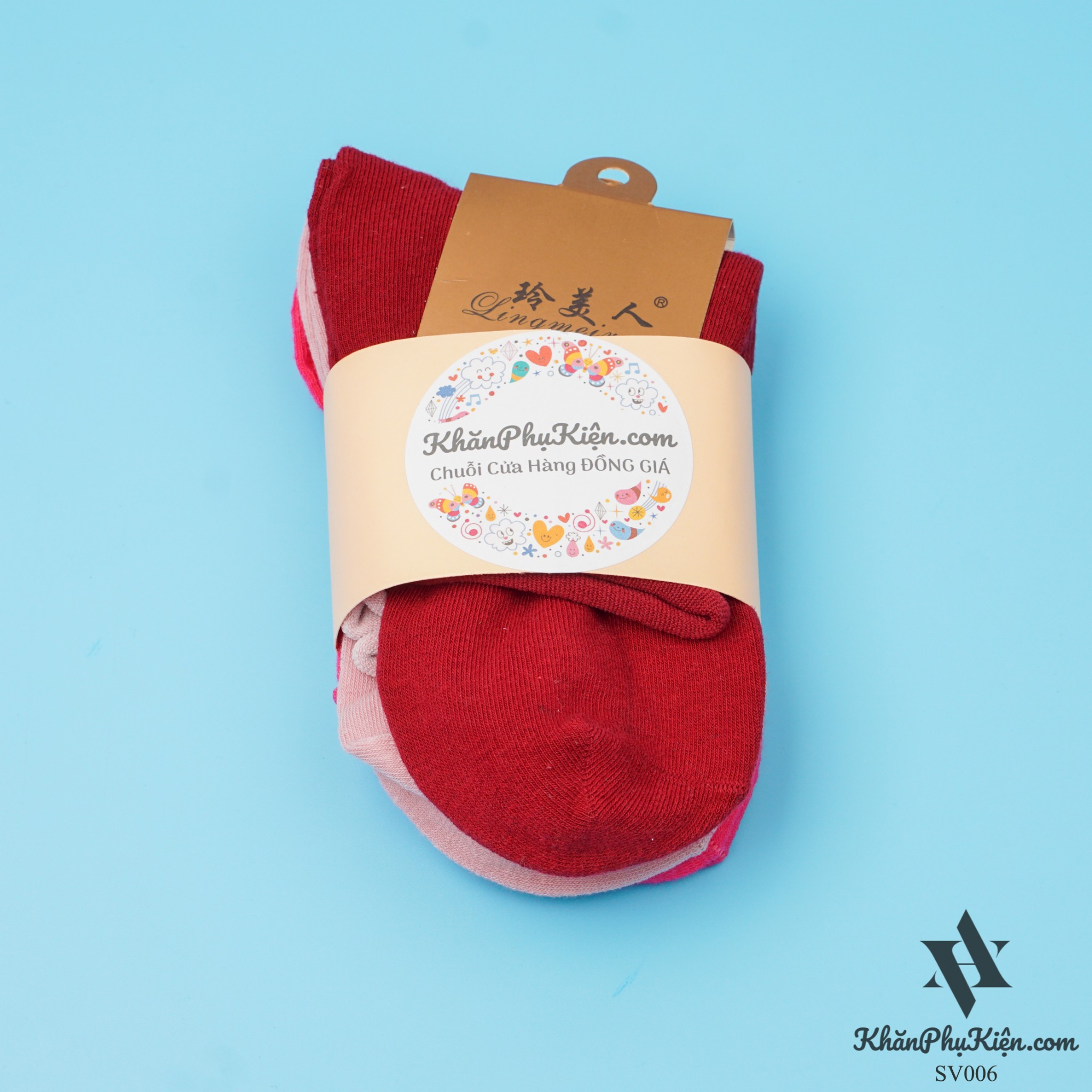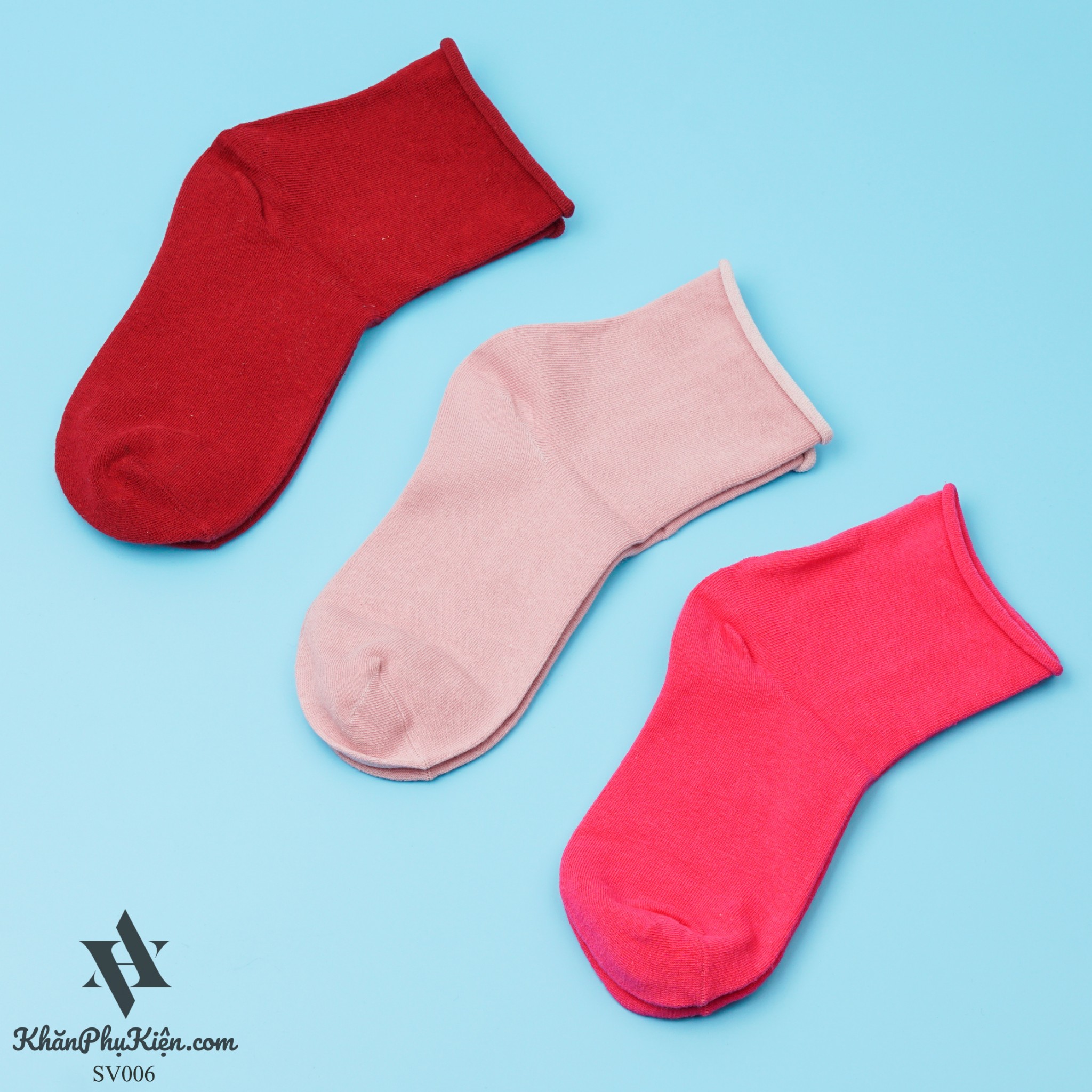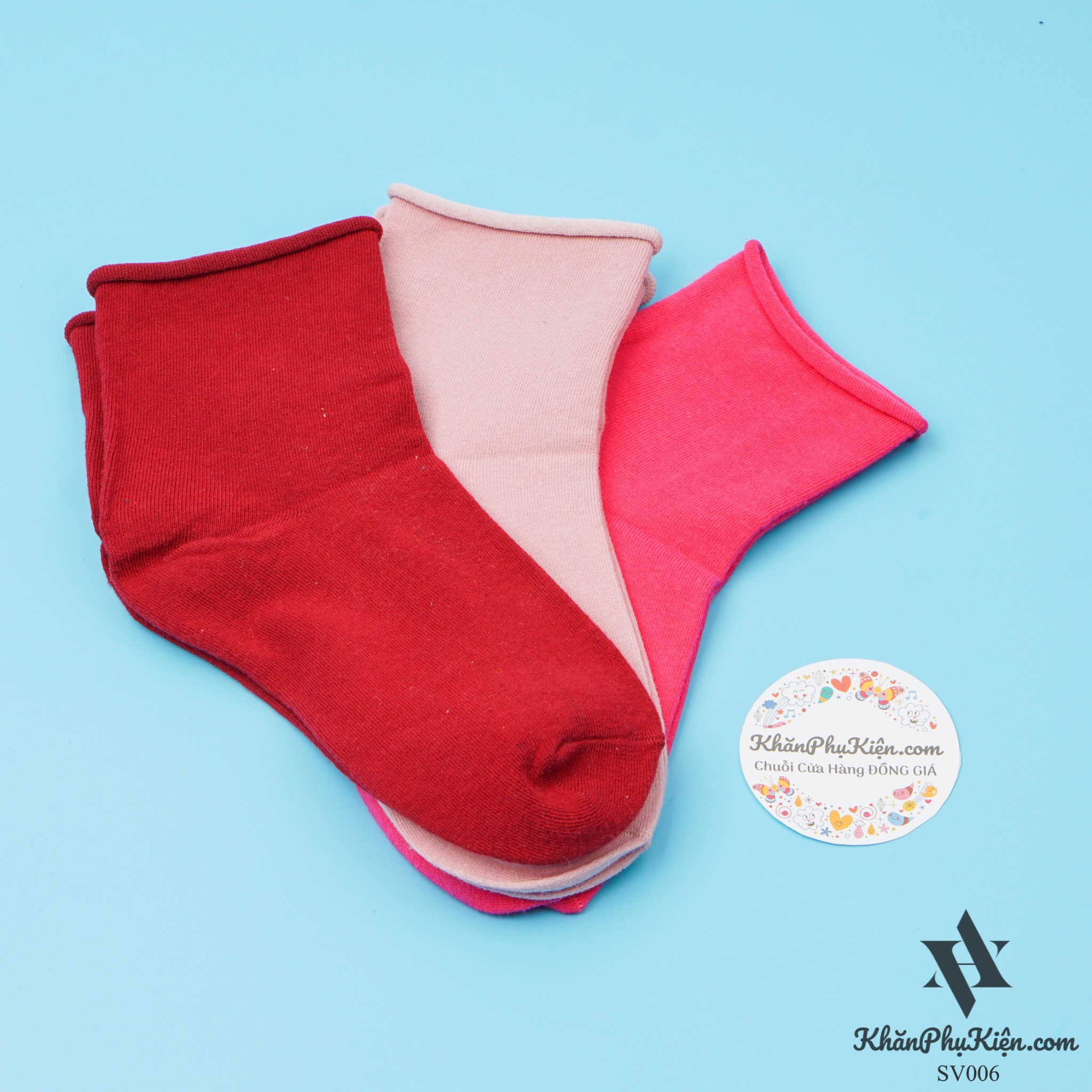Set Vớ 3 Đôi Cổ Cao Màu Hồng Đậm, Hồng Tím, Sọc Đỏ Be - Mã SV006
