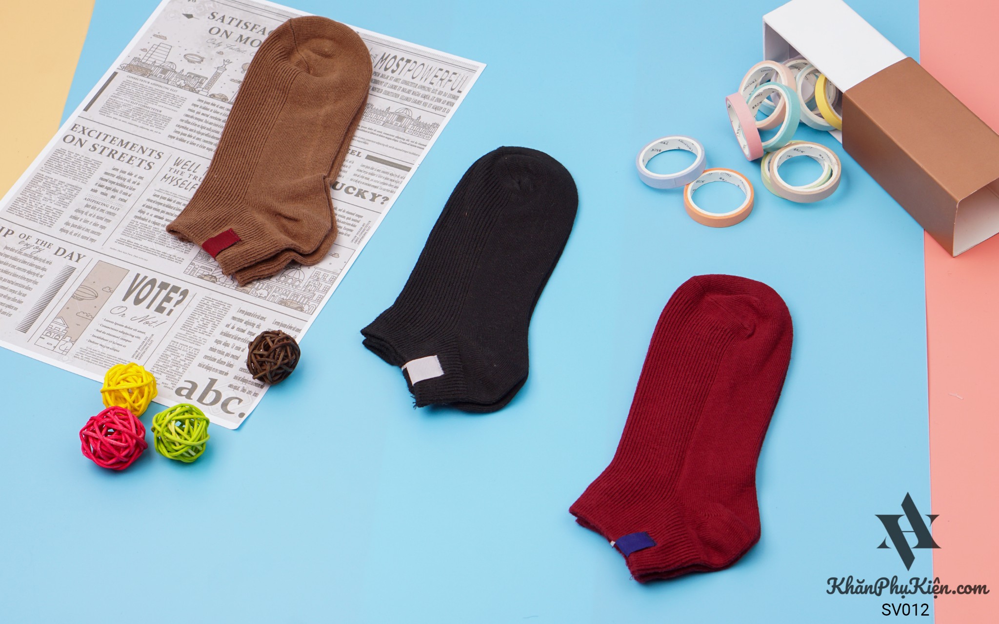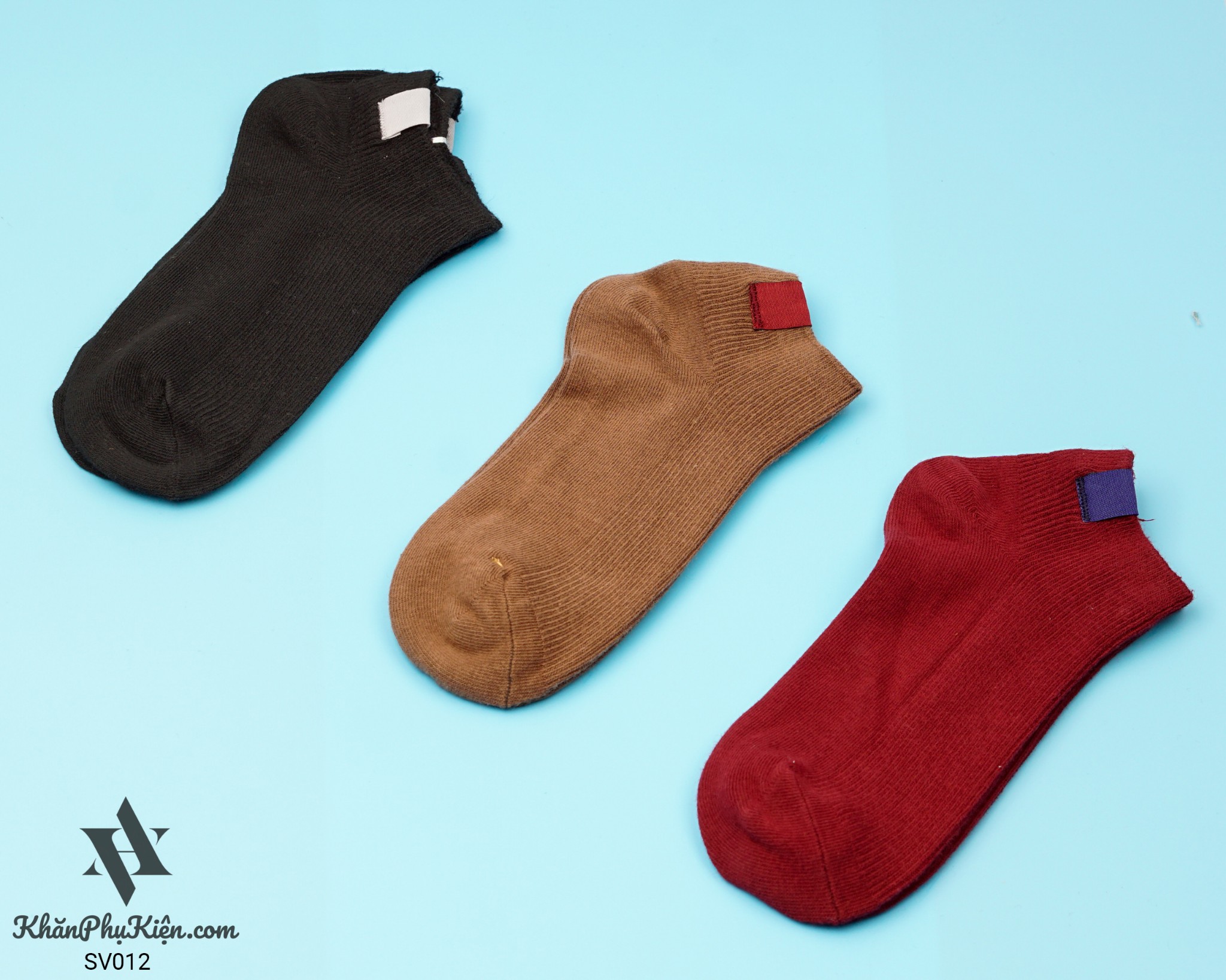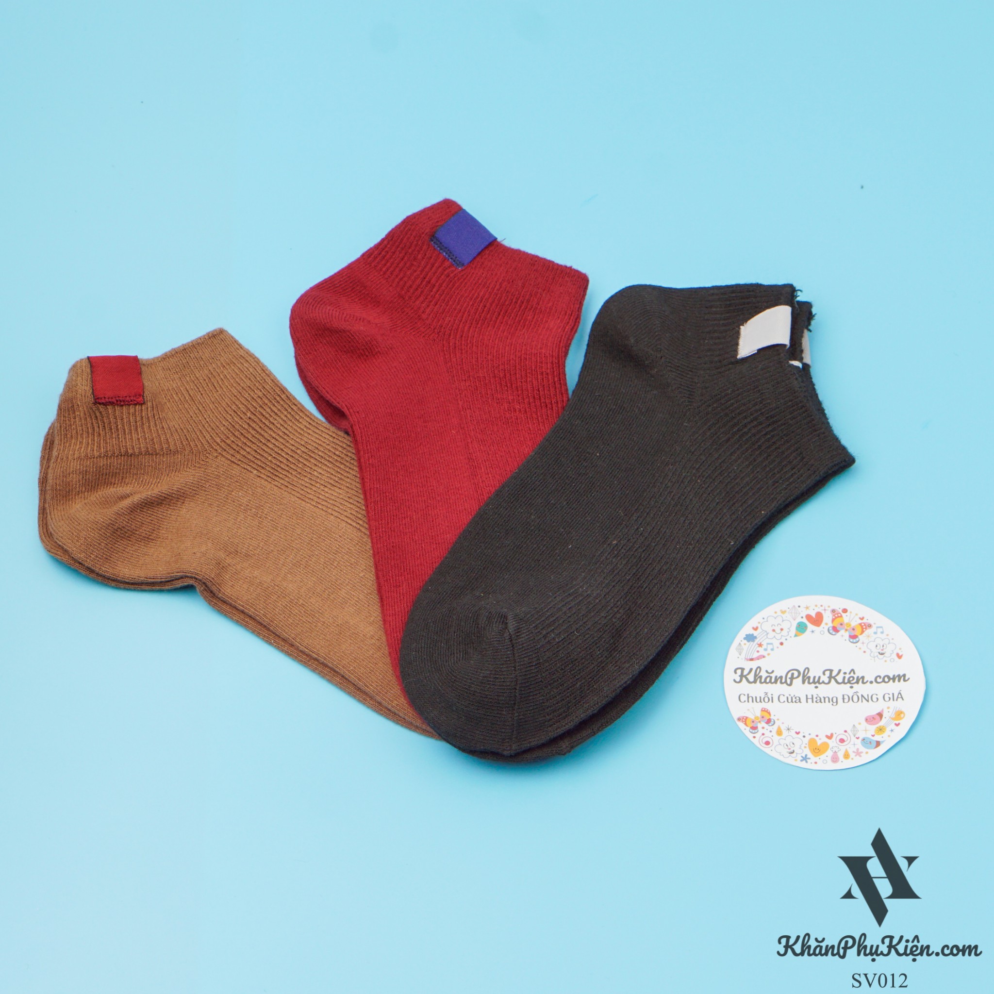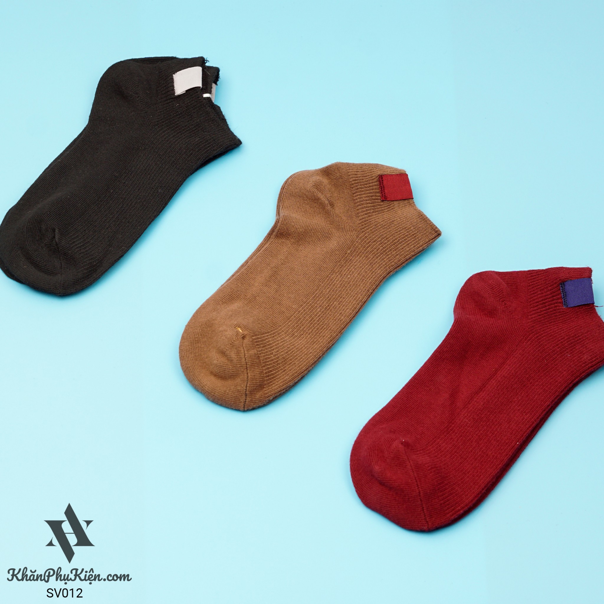 Set Vớ 3 Đôi Cổ Ngắn Gắn Tag Màu Đỏ Mận, Nâu, Đen - Mã SV012