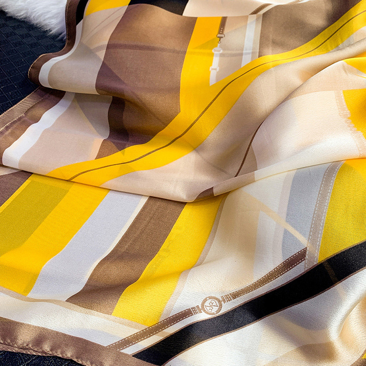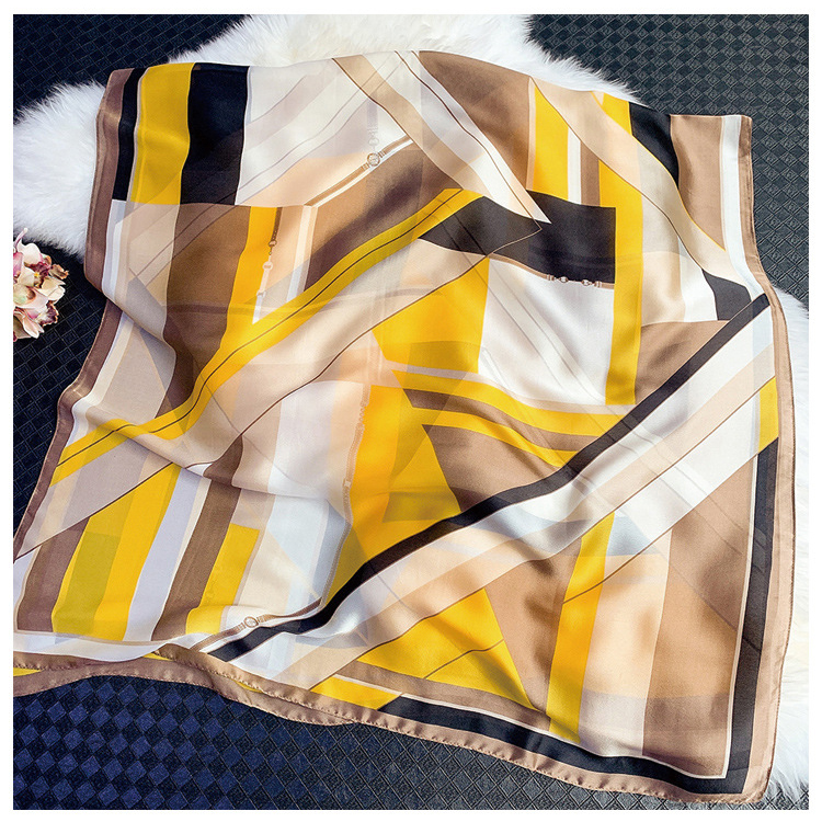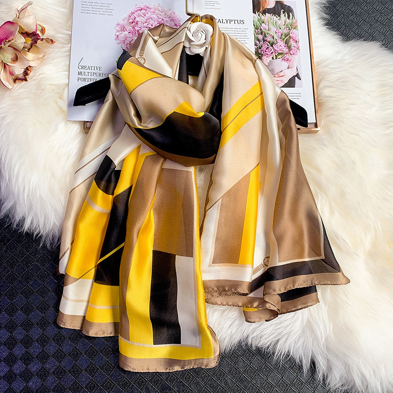 Khăn Choàng Cổ Lụa Họa Tiết Sọc Vuông Phối Nhiều Màu Nền Vàng - Lụa Silk - 180x90cm - Mã KS169