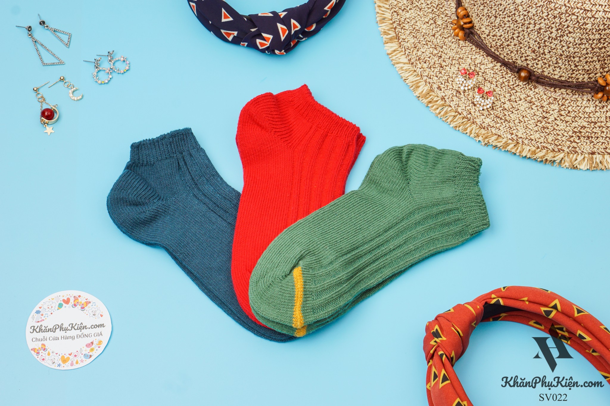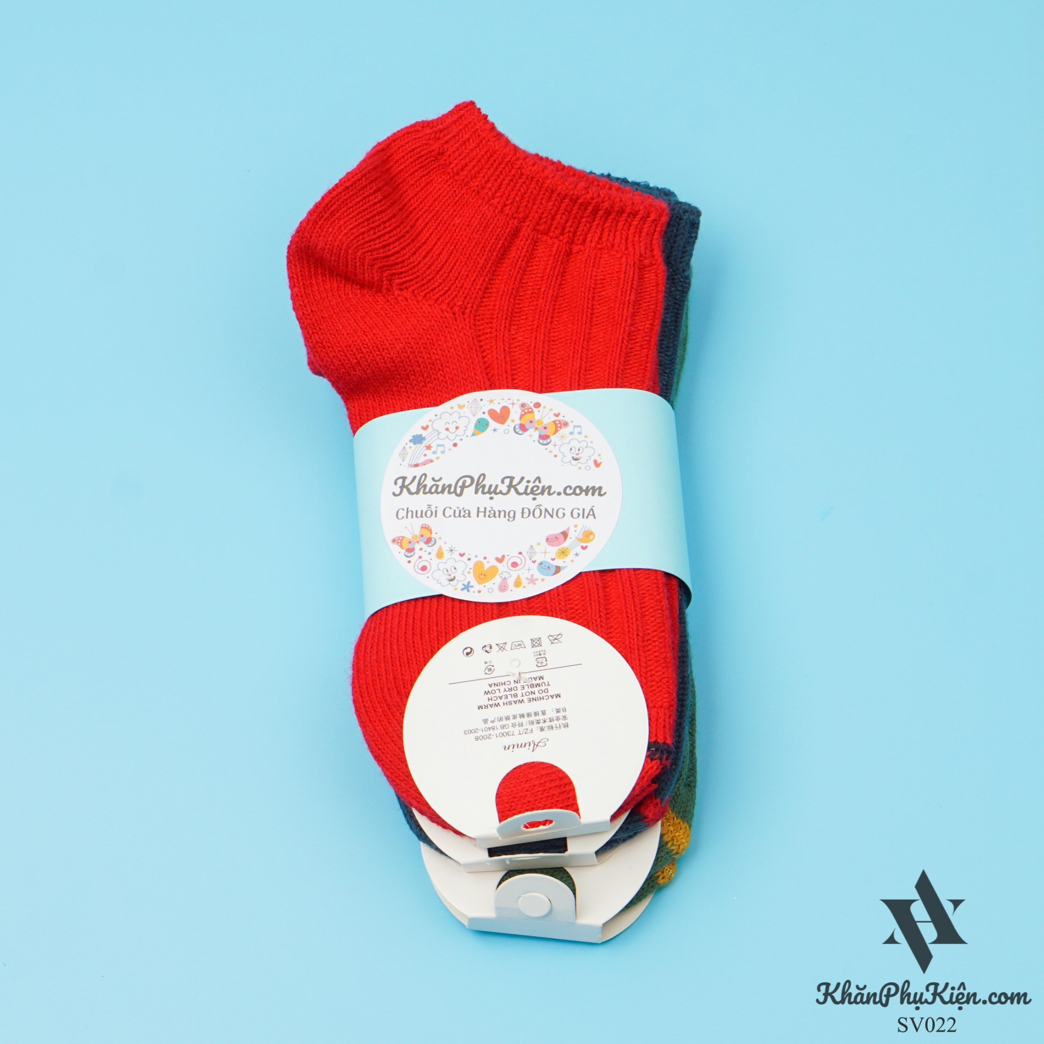 Set Vớ 3 Đôi Cổ Ngắn Len Màu Xanh Đậm, Xanh Lá, Đỏ - Mã SV022