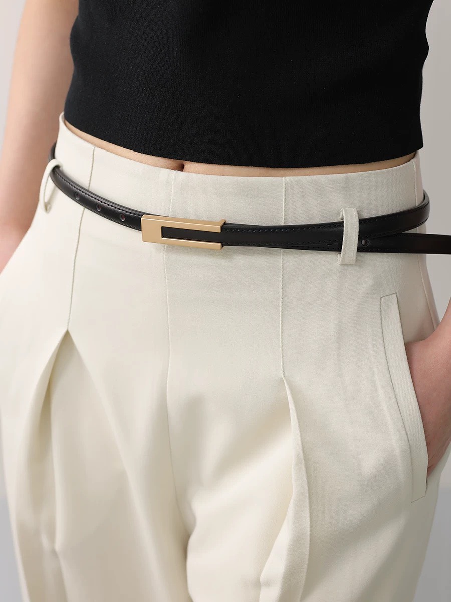 Thắt lưng nữ da bò thật LÀ GU dây nịt da thật đai váy da thật Hàn Quốc cao cấp phong cách hiện đại - Màu Đen - DNT025