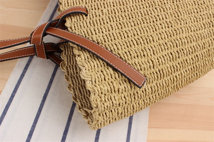 Mô tả Túi cói đi biển vintage thời trang nữ phong cách cầm tay Hàn Quốc đẹp cổ điển dây da màu nâu - TC049