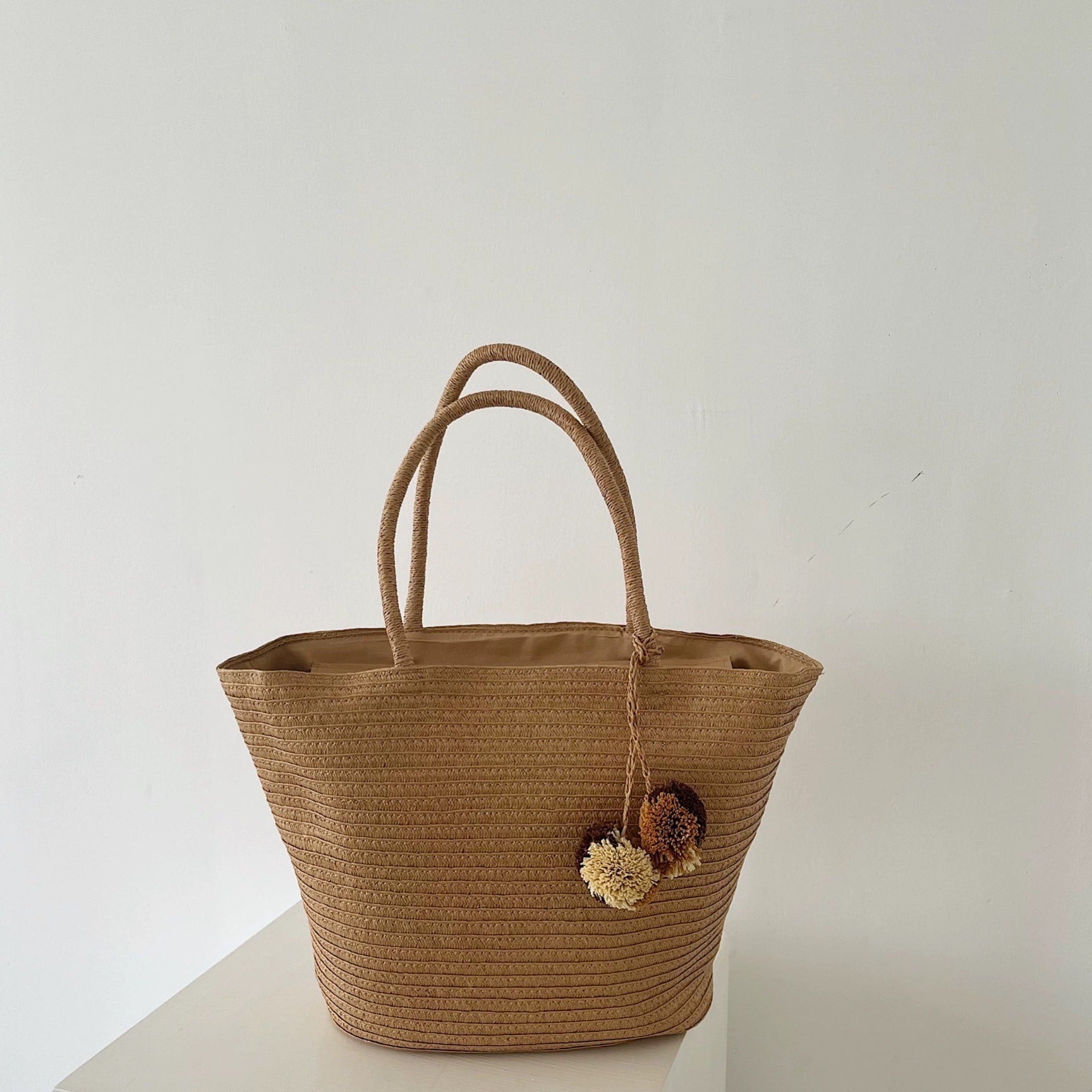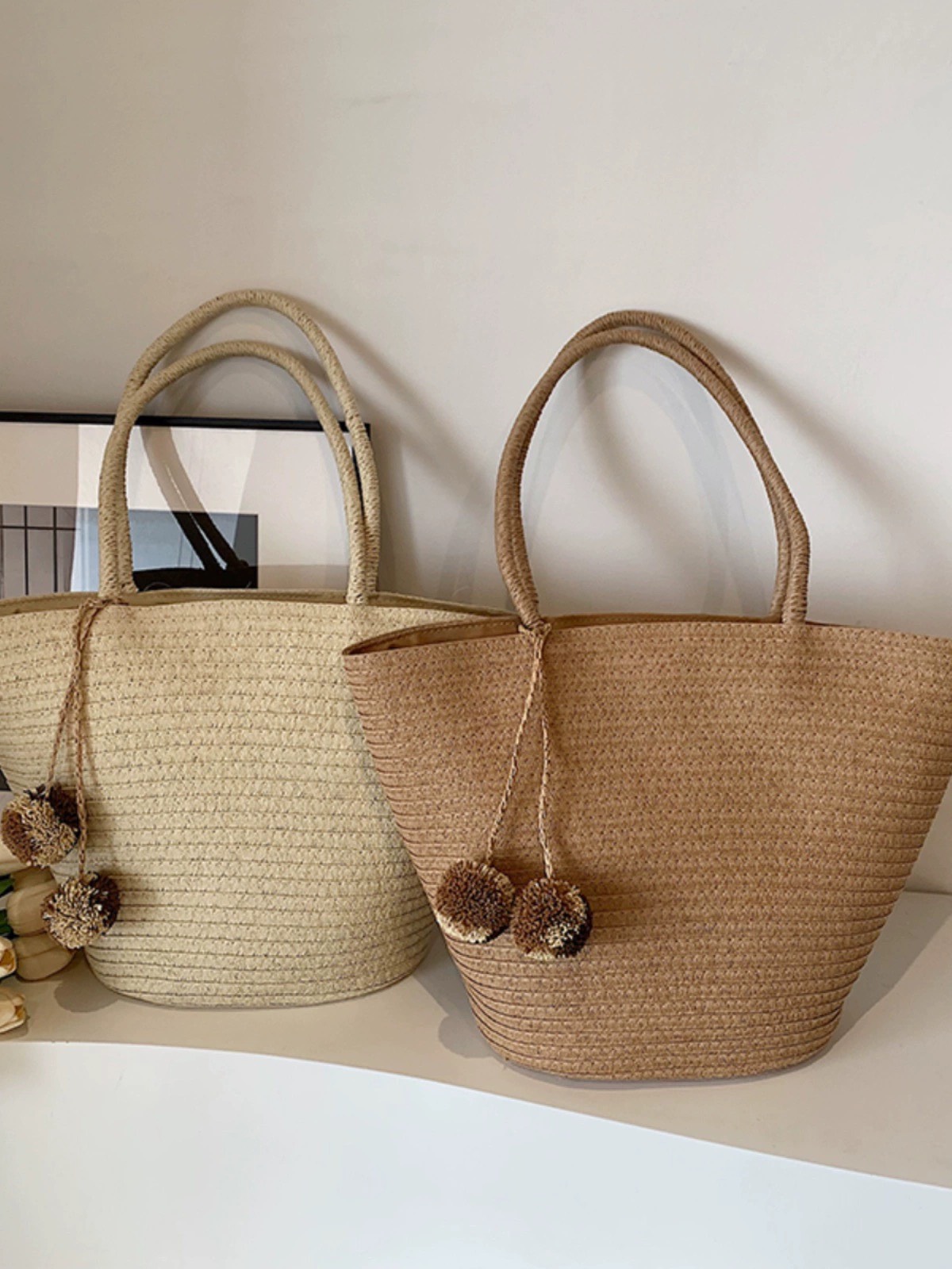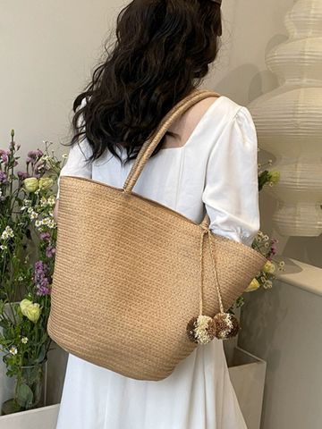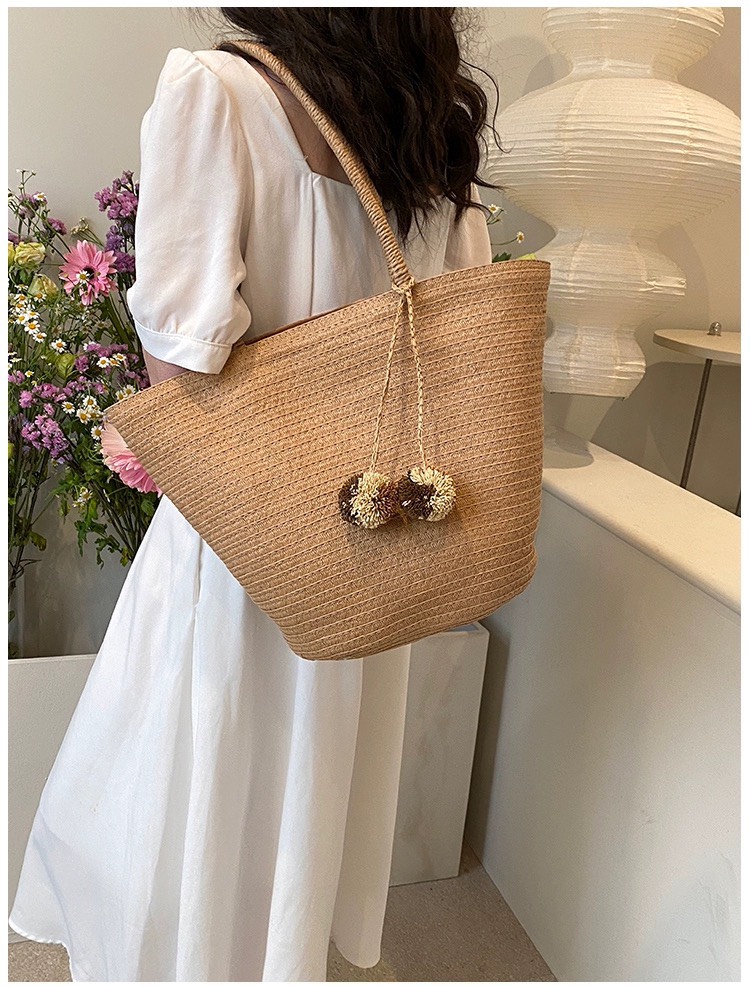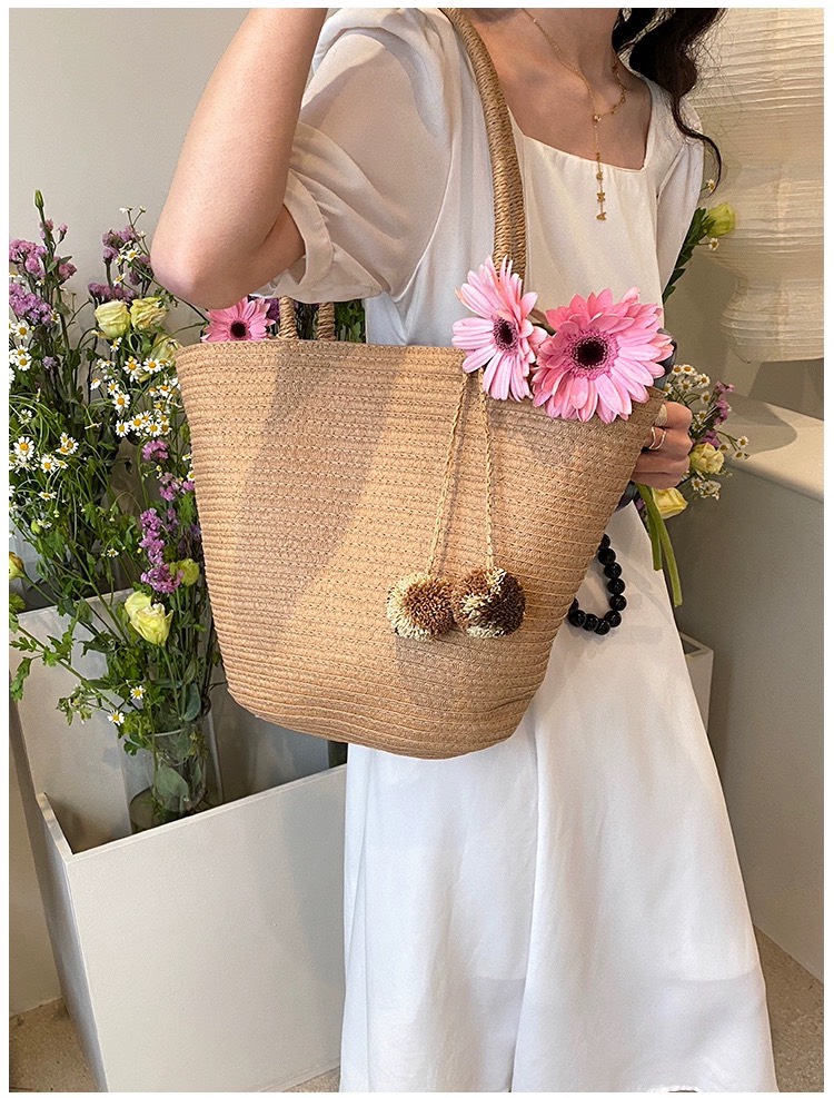 Mô tả Túi cói đi biển vintage thời trang nữ phong cách cầm tay Hàn Quốc đẹp cổ điển dây vải màu nâu- TC085