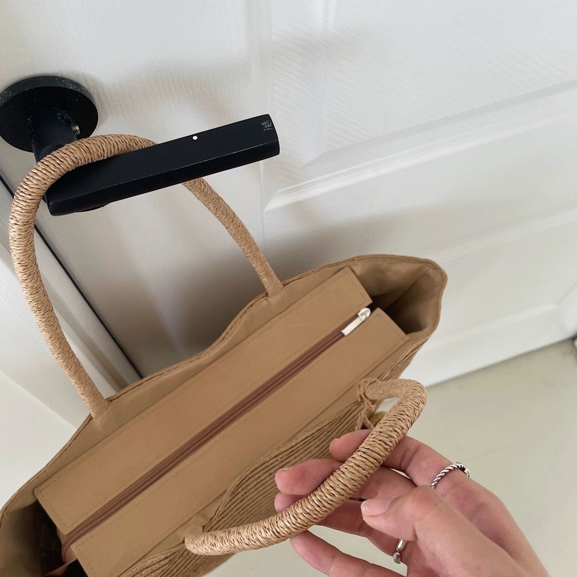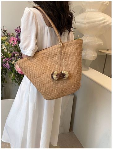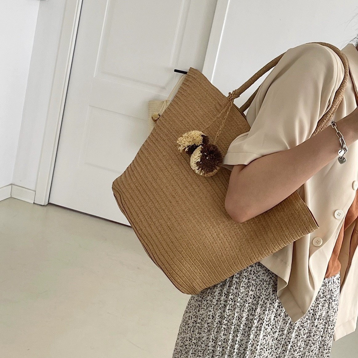 Túi cói đi biển vintage thời trang nữ phong cách cầm tay Hàn Quốc đẹp cổ điển dây vải màu nâu- TC093