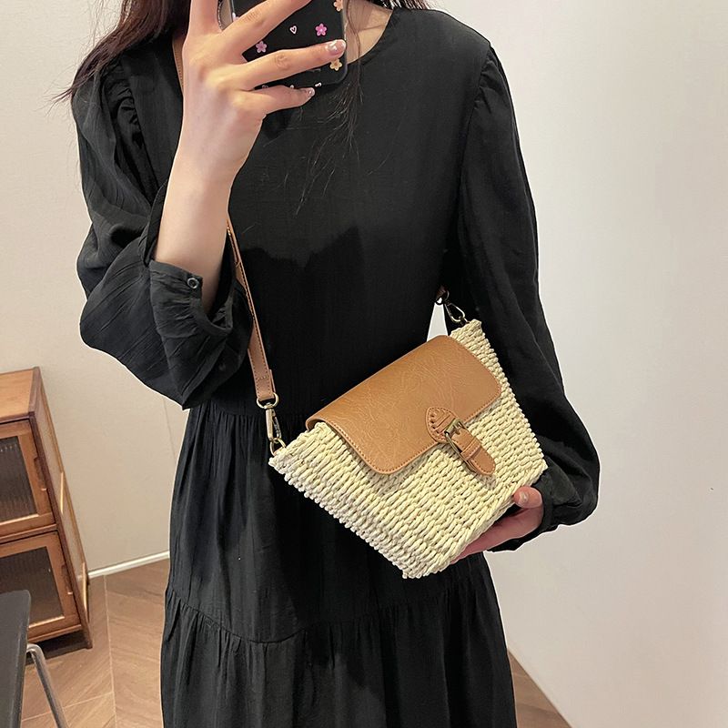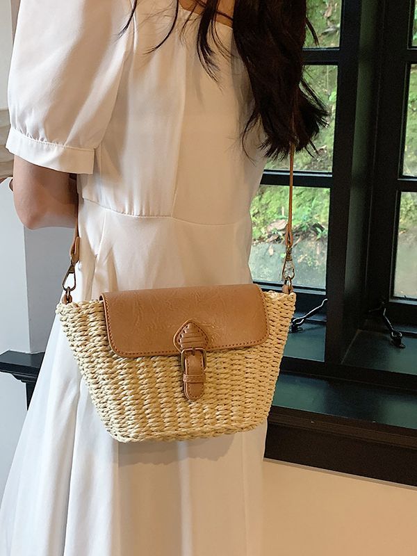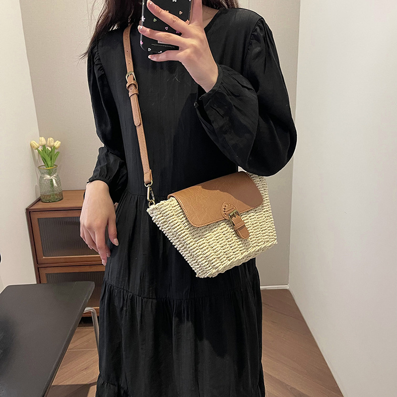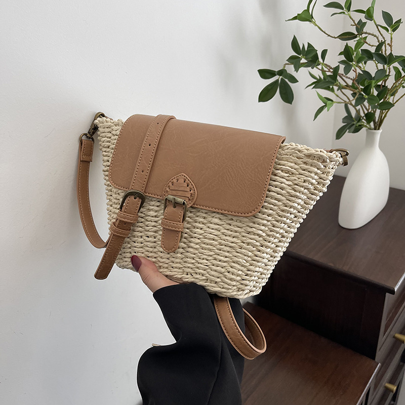 Túi cói đi biển vintage thời trang nữ phong cách cầm tay Hàn Quốc đẹp cổ điển dây vải màu nâu- TC094