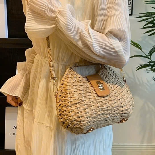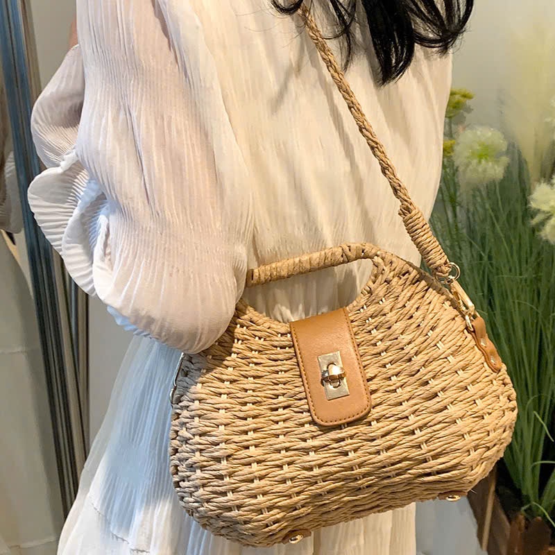 Mô tả Túi cói đi biển vintage thời trang nữ phong cách cầm tay Hàn Quốc đẹp cổ điển LÀ GU Khăn Phụ Kiện - TC120