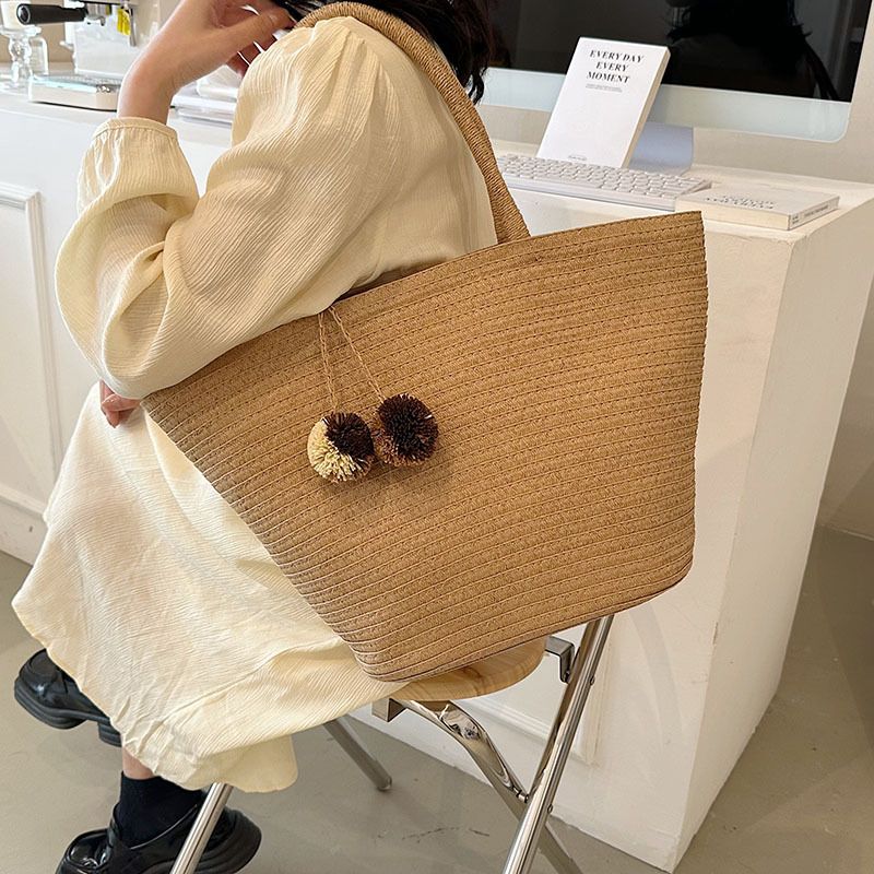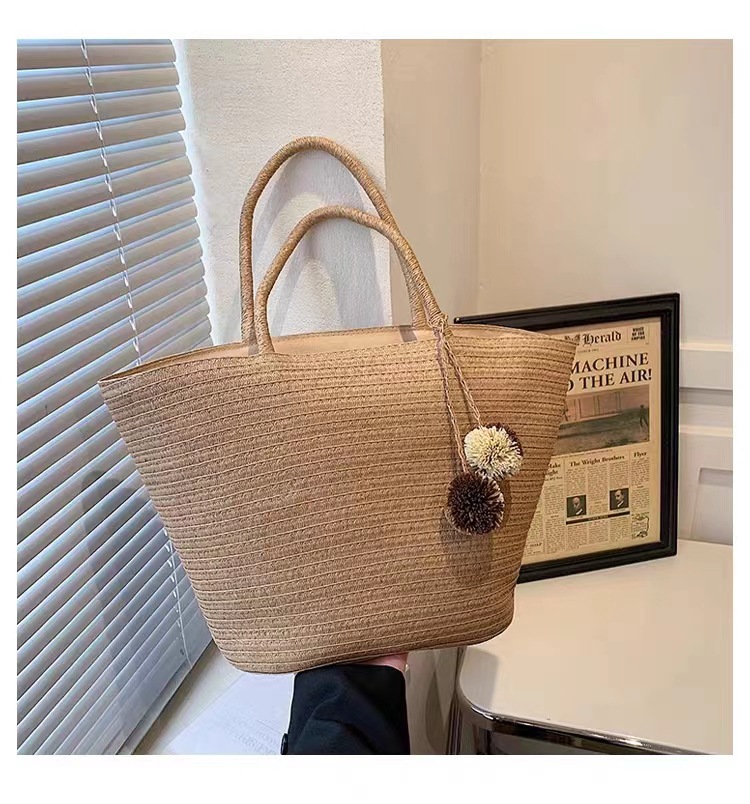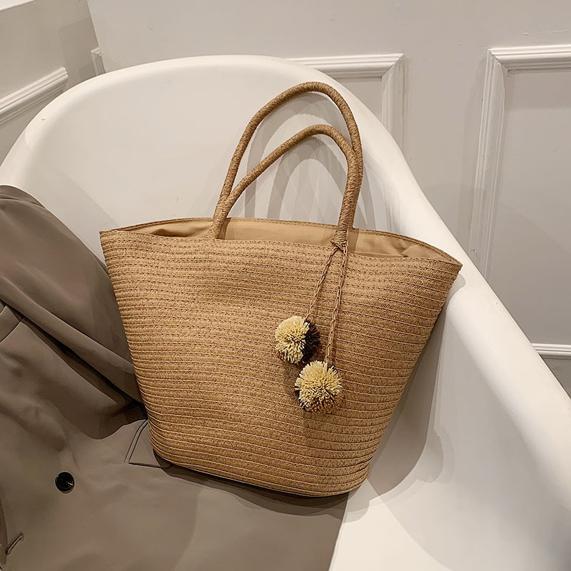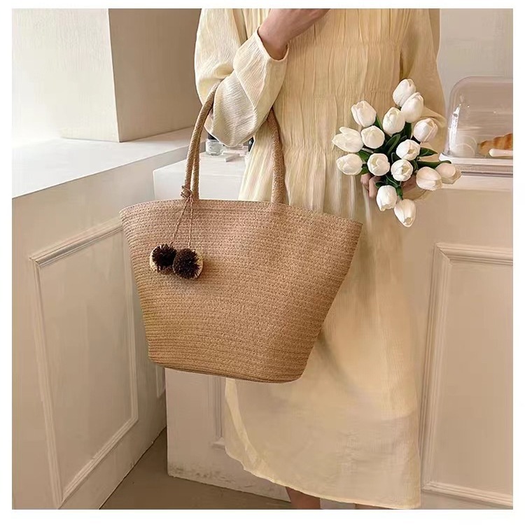 Mô tả Túi cói đi biển vintage thời trang nữ phong cách cầm tay Hàn Quốc đẹp cổ điển màu nâu be sáng