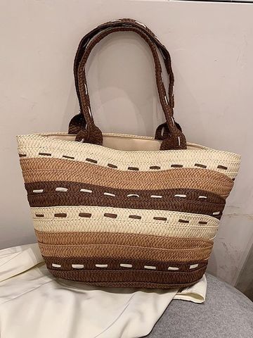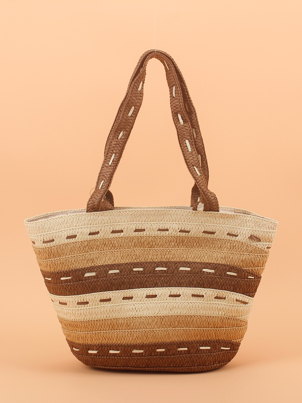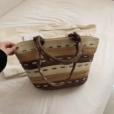 Túi cói đi biển vintage thời trang nữ phong cách cầm tay Hàn Quốc đẹp cổ điển màu nâu be sáng - TC095