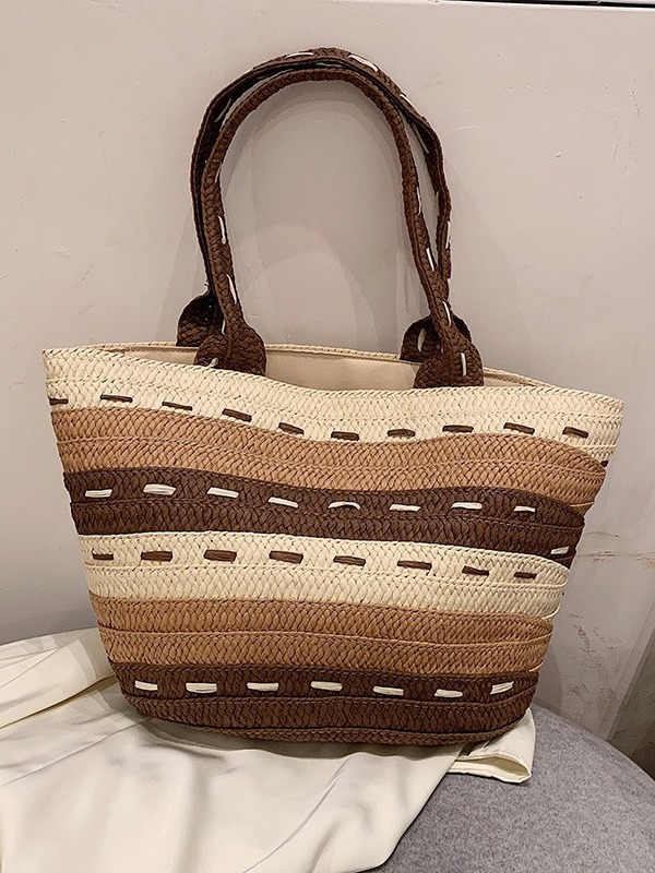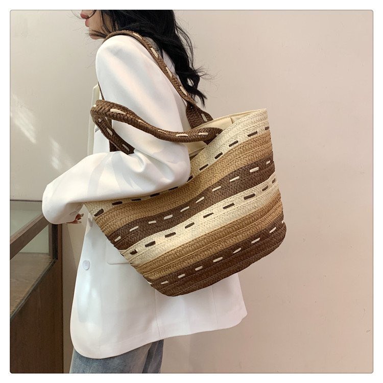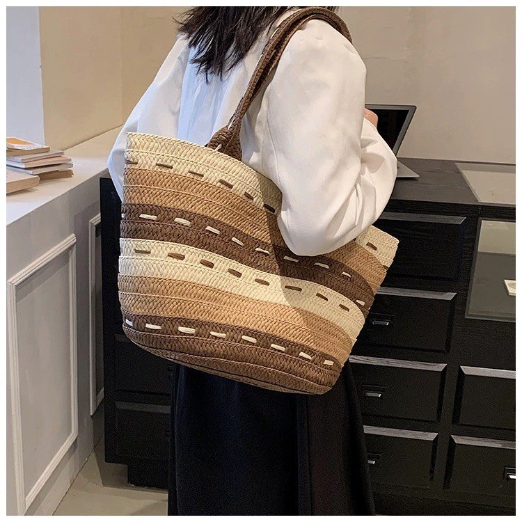 Mô tả Túi cói đi biển vintage thời trang nữ phong cách cầm tay Hàn Quốc đẹp cổ điển màu nâu be sáng