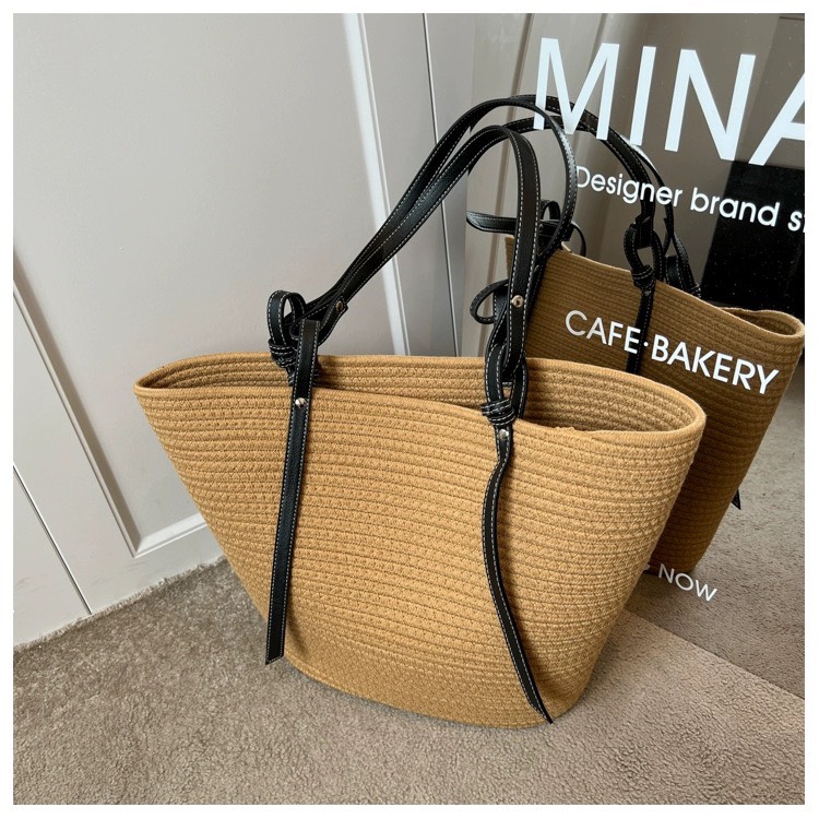 Túi cói đi biển vintage thời trang nữ phong cách cầm tay Hàn Quốc đẹp cổ điển màu nâu đậm - TC103