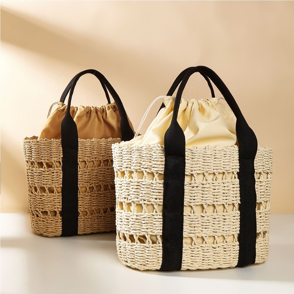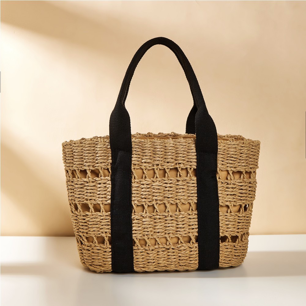Mô tả Túi cói đi biển vintage thời trang nữ phong cách cầm tay Hàn Quốc đẹp cổ điển màu nâu phối đen
