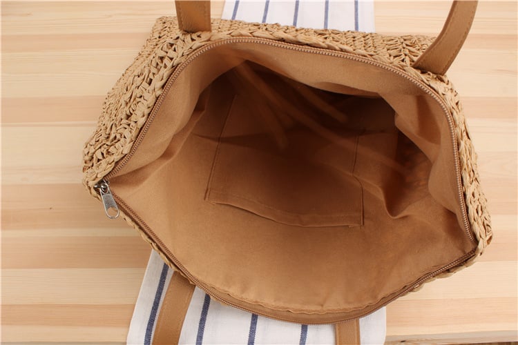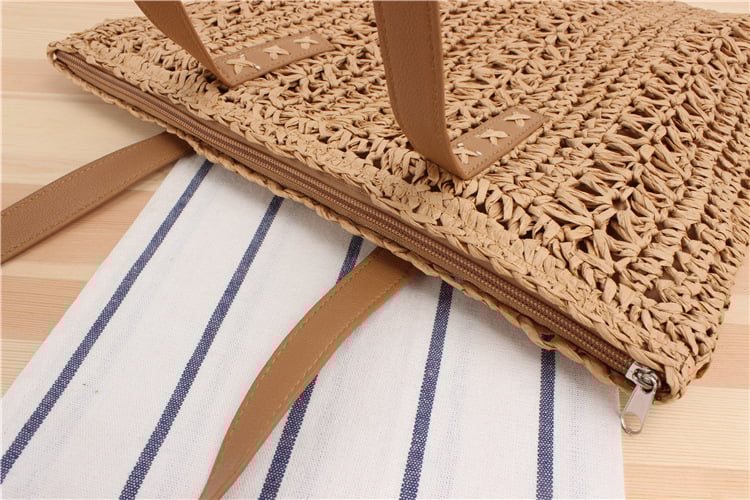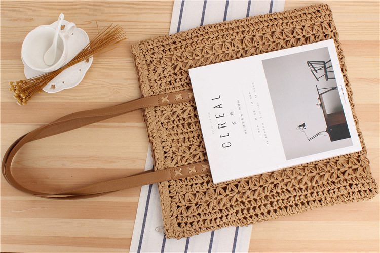 Mô tả Túi cói đi biển vintage thời trang nữ phong cách cầm tay Hàn Quốc đẹp cổ điển màu nâu
