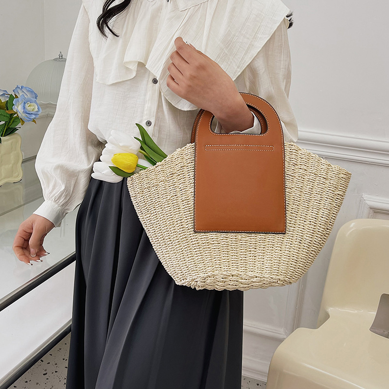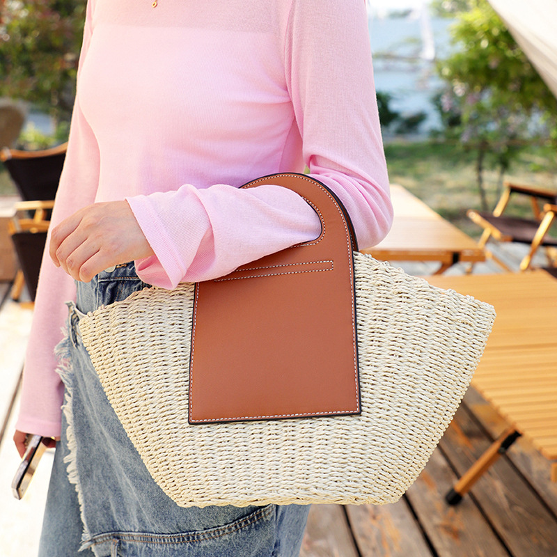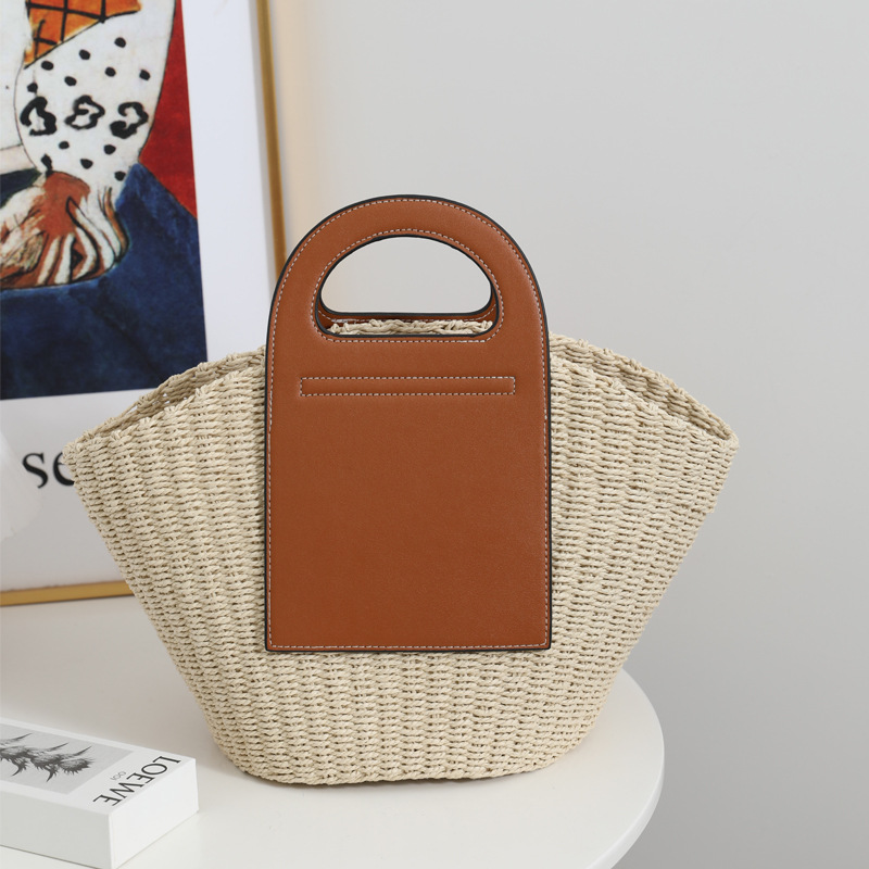 Mô tả Túi cói đi biển vintage thời trang nữ phong cách cầm tay Hàn Quốc đẹp cổ điển dây da màu nâu