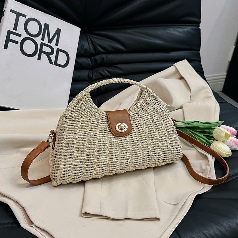Mô tả Túi cói đi biển vintage thời trang nữ phong cách cầm tay Hàn Quốc đẹp cổ điển LÀ GU Khăn Phụ Kiện - TC116