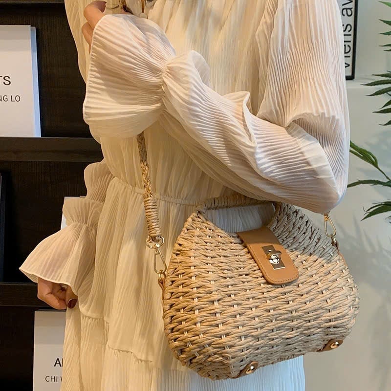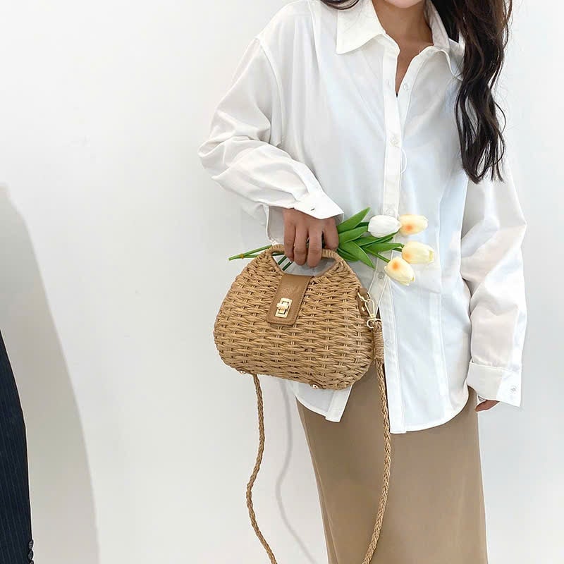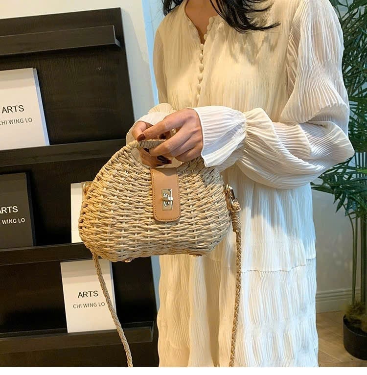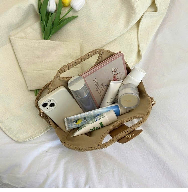 Mô tả Túi cói đi biển vintage thời trang nữ phong cách cầm tay Hàn Quốc đẹp cổ điển LÀ GU Khăn Phụ Kiện - TC120