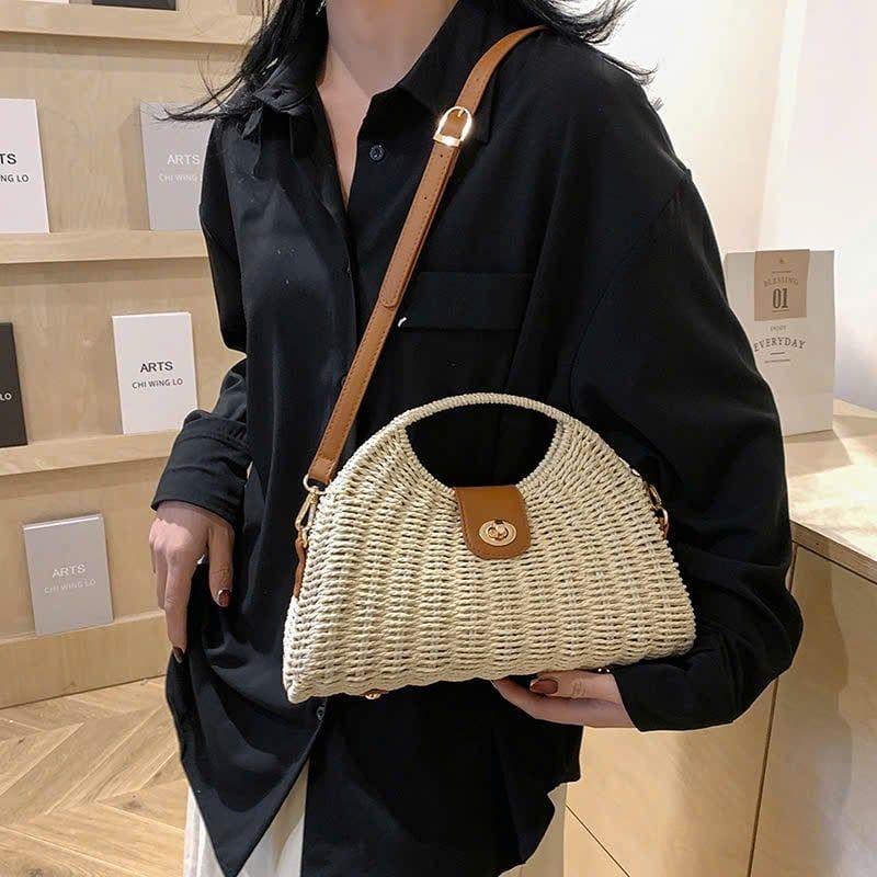 Mô tả Túi cói đi biển vintage thời trang nữ phong cách cầm tay Hàn Quốc đẹp cổ điển LÀ GU Khăn Phụ Kiện - TC116
