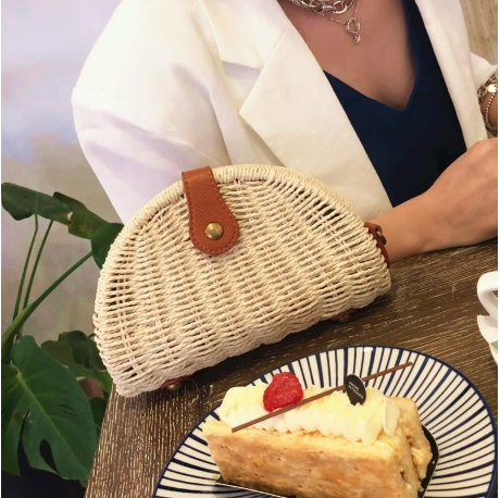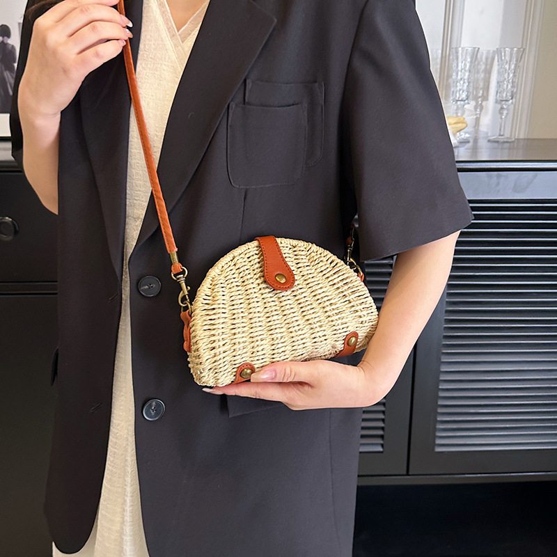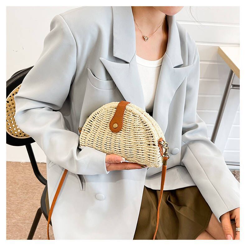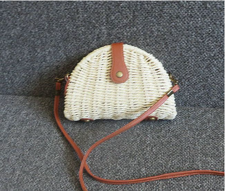 Mô tả Túi cói đi biển vintage thời trang nữ phong cách đeo chéo vai Hàn Quốc đẹp dây da màu be trơn